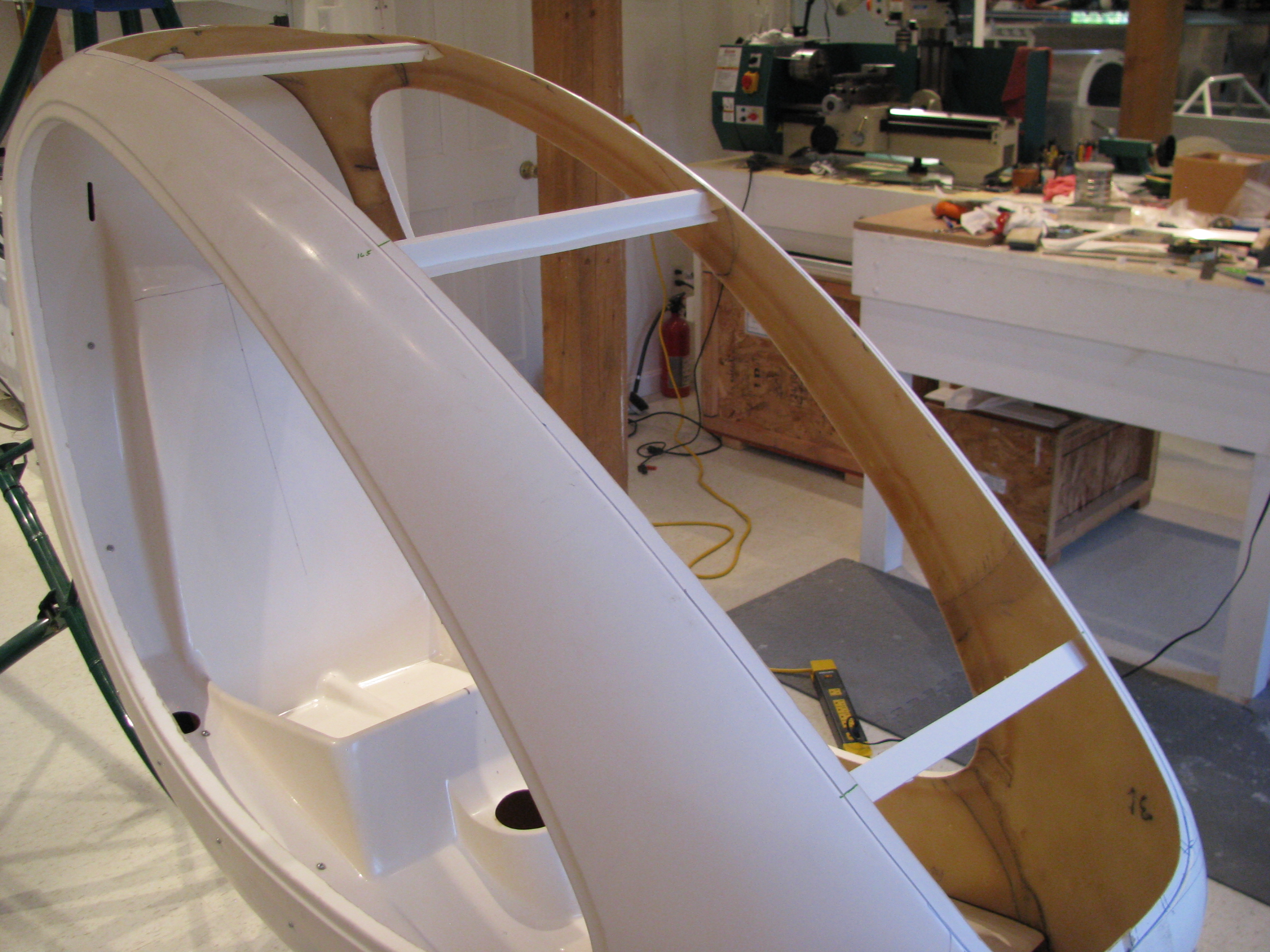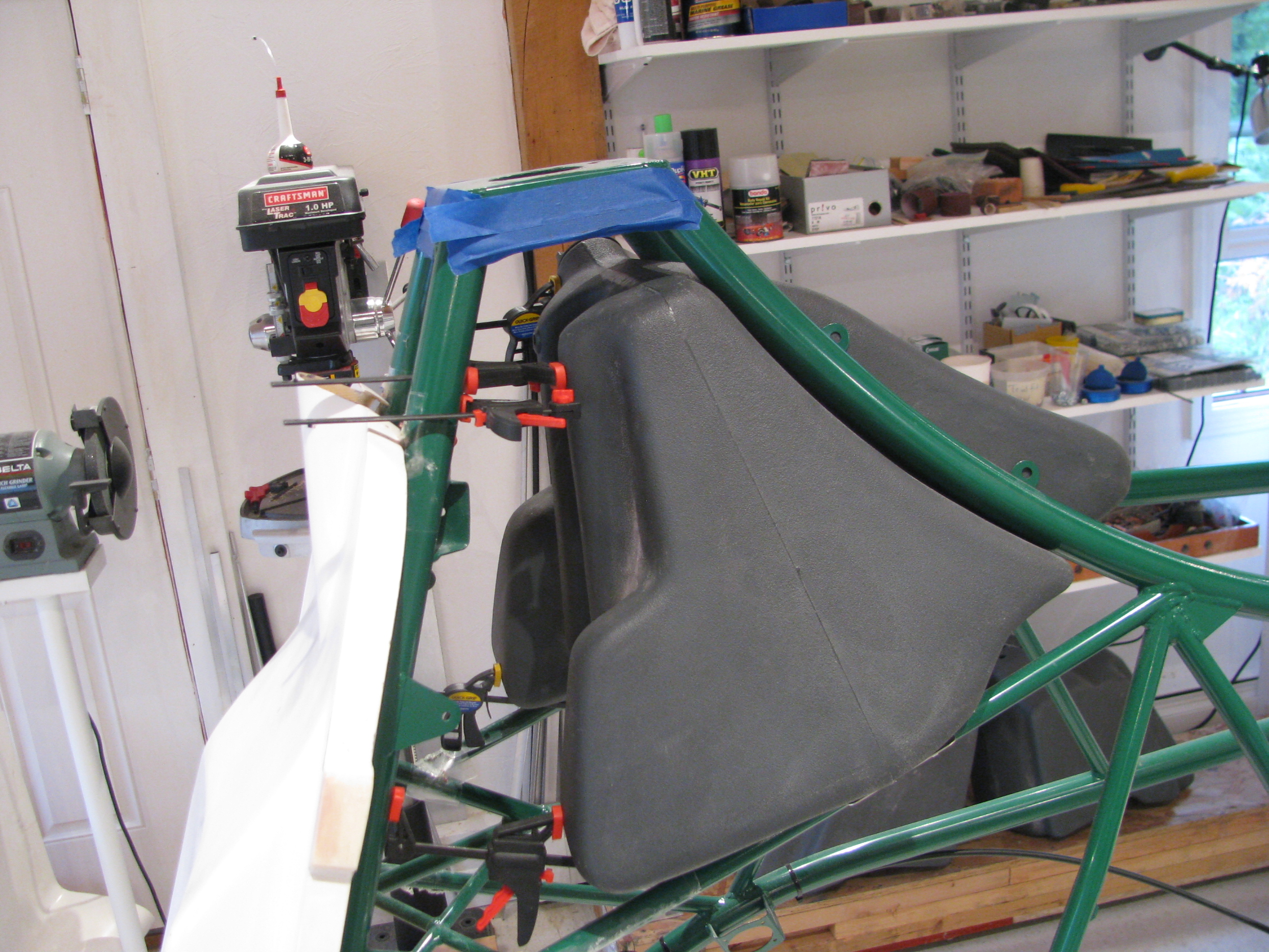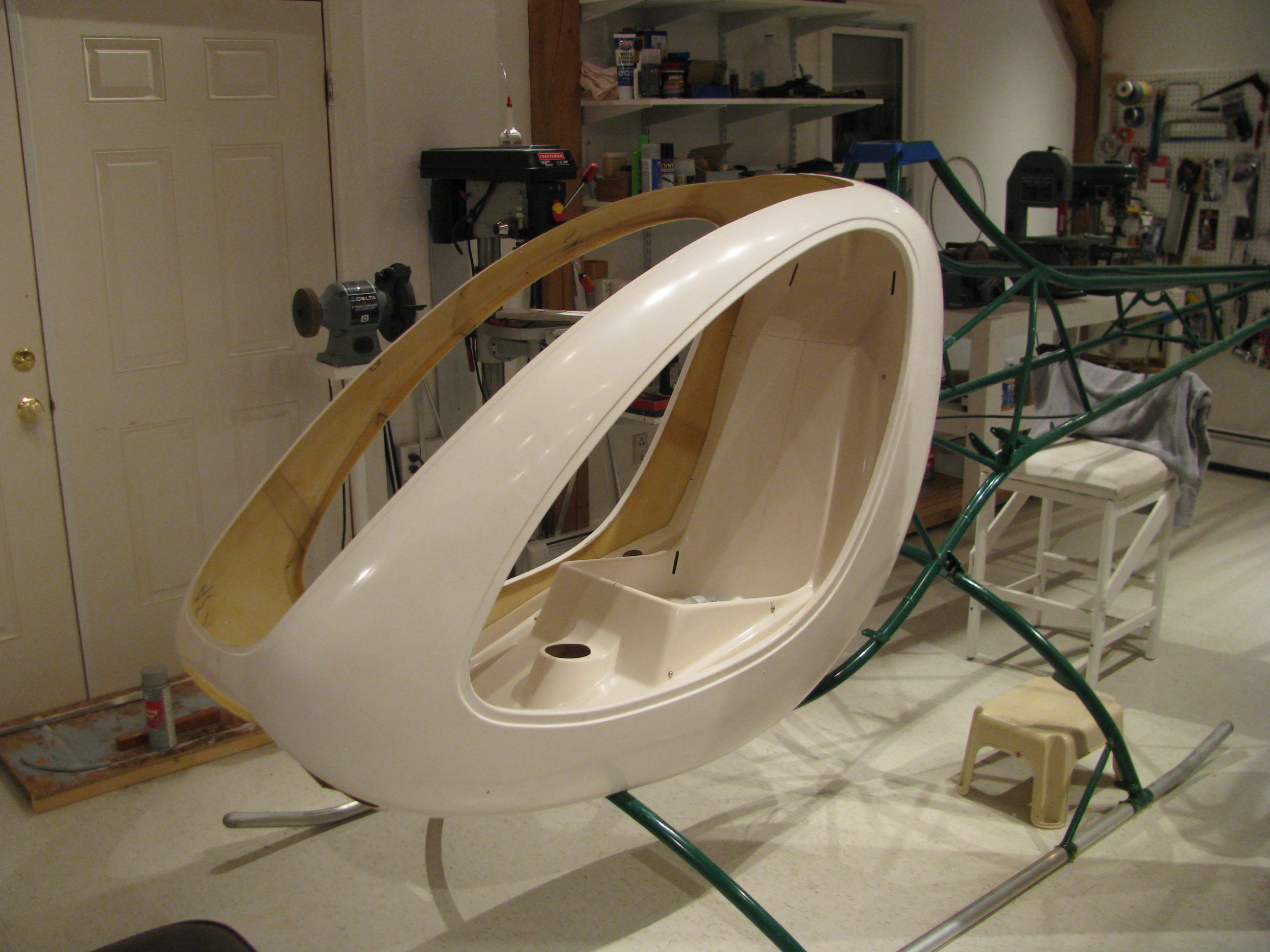 As can be seen below, a fair amount of material has to come off both sides of the front of the footwells to fit down between the two front frame tubes. The fiberglass is at least doubled up here around the bends, so hopefully the strength is not compromised too much. We shall see as this will probably be a high stress area in getting in and out of the ship.