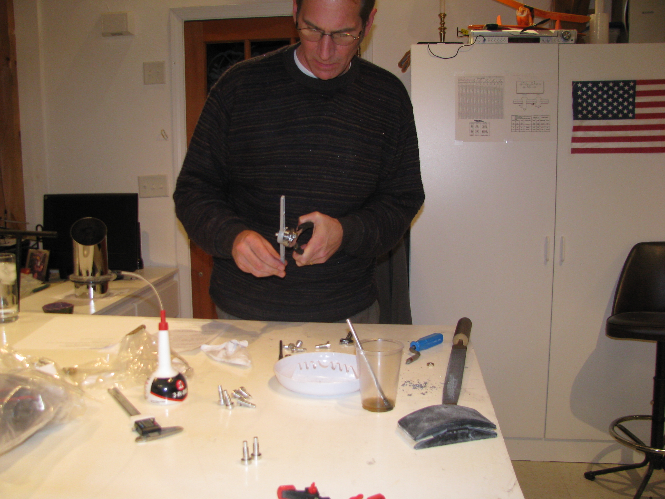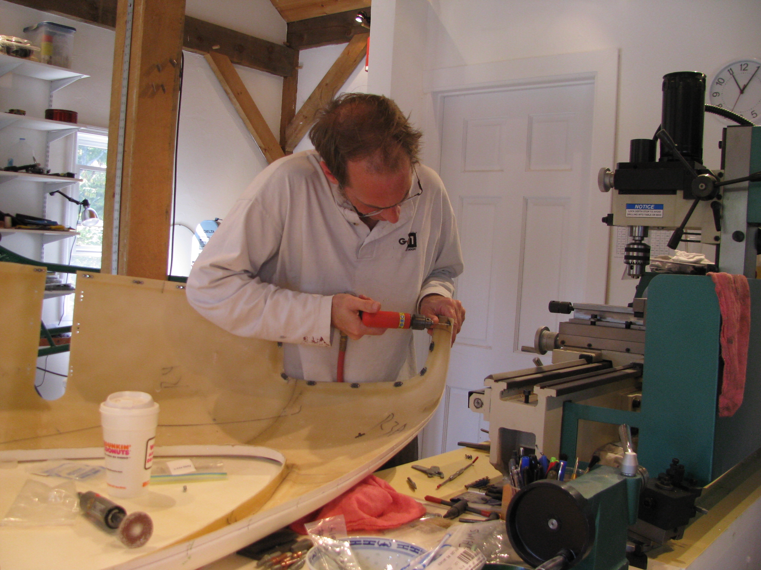Obligatory, FAA-mandated picture of me deburring control rods. I engineered the shop lighting to highlight encroaching baldness. Works pretty well, eh?