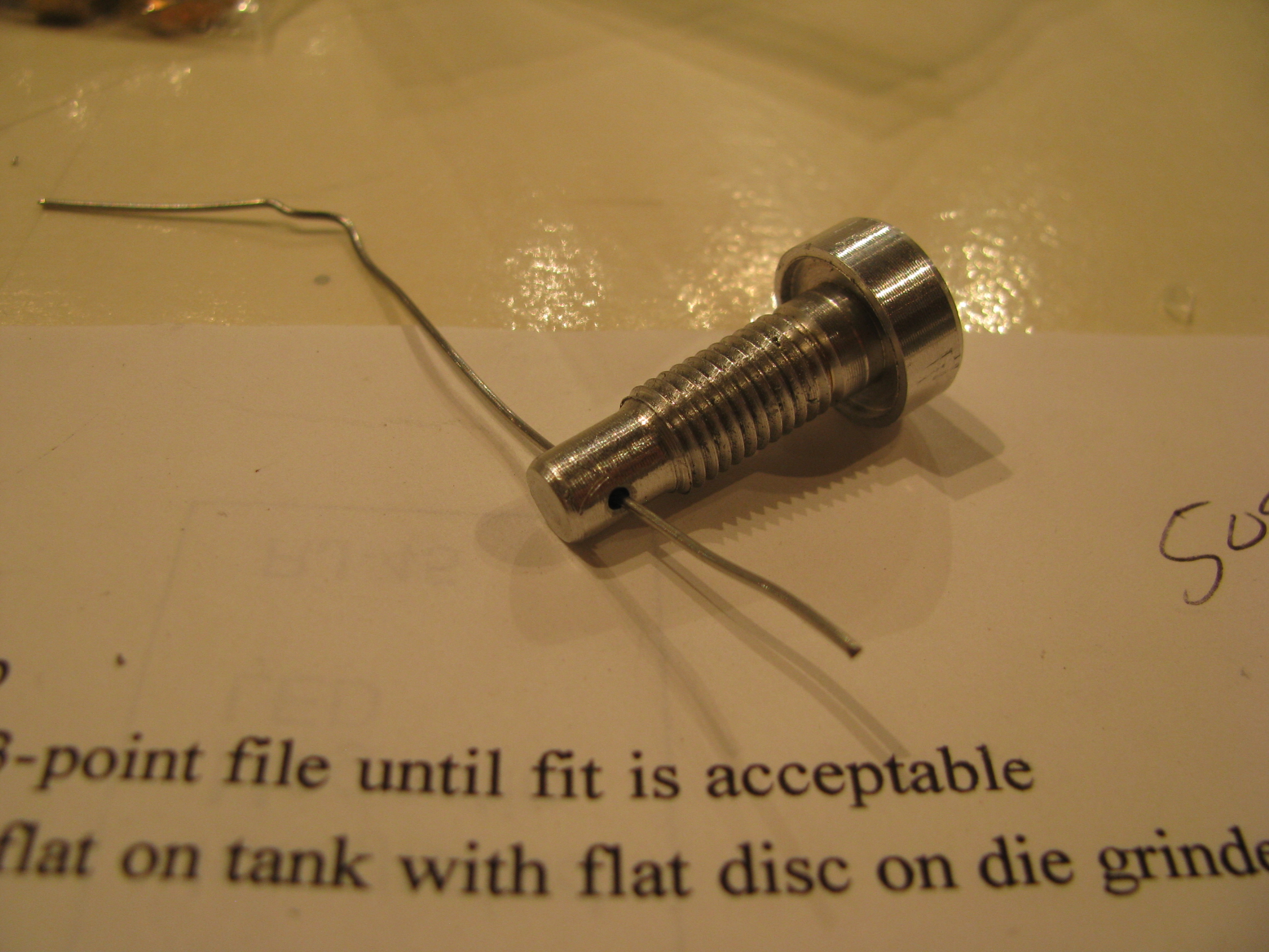 So I measured and drilled right at the point of the bolt head, tapped the plug for little 8-32x3/16 set screws that will sit inside the plug, and drilled a little into the bolt head. Same treatment on both sides. I’ll install the bolt, and loctite the set screws. That bolt isn’t moving.