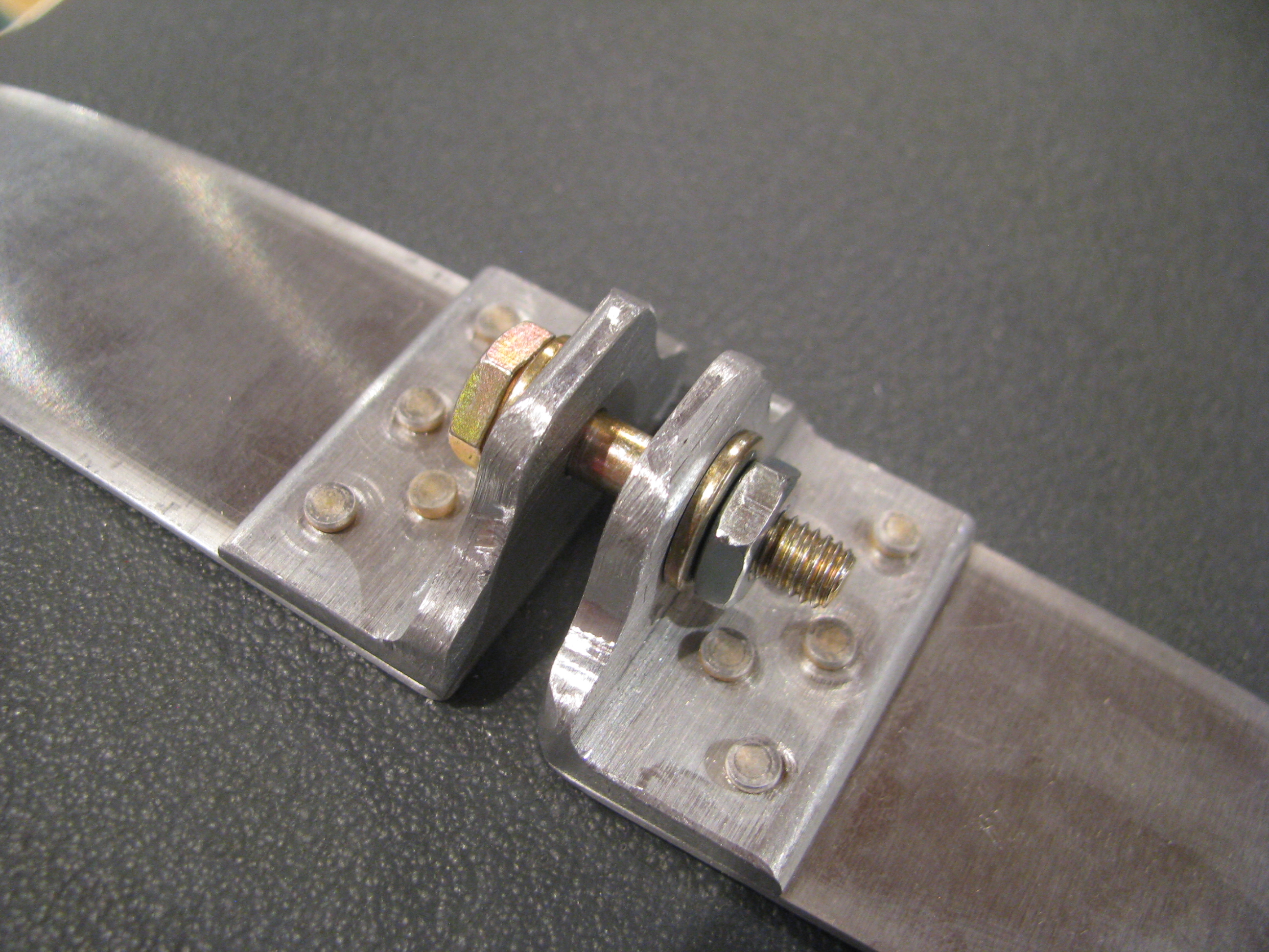The collective is held in two places. The first is the pivot plug/bolt previously described, and the second is this aluminum construction. Two pieces of aluminum are supplied cut from bar stock. The corners must be radiused, which is no simple trick since they’re about an inch thick.