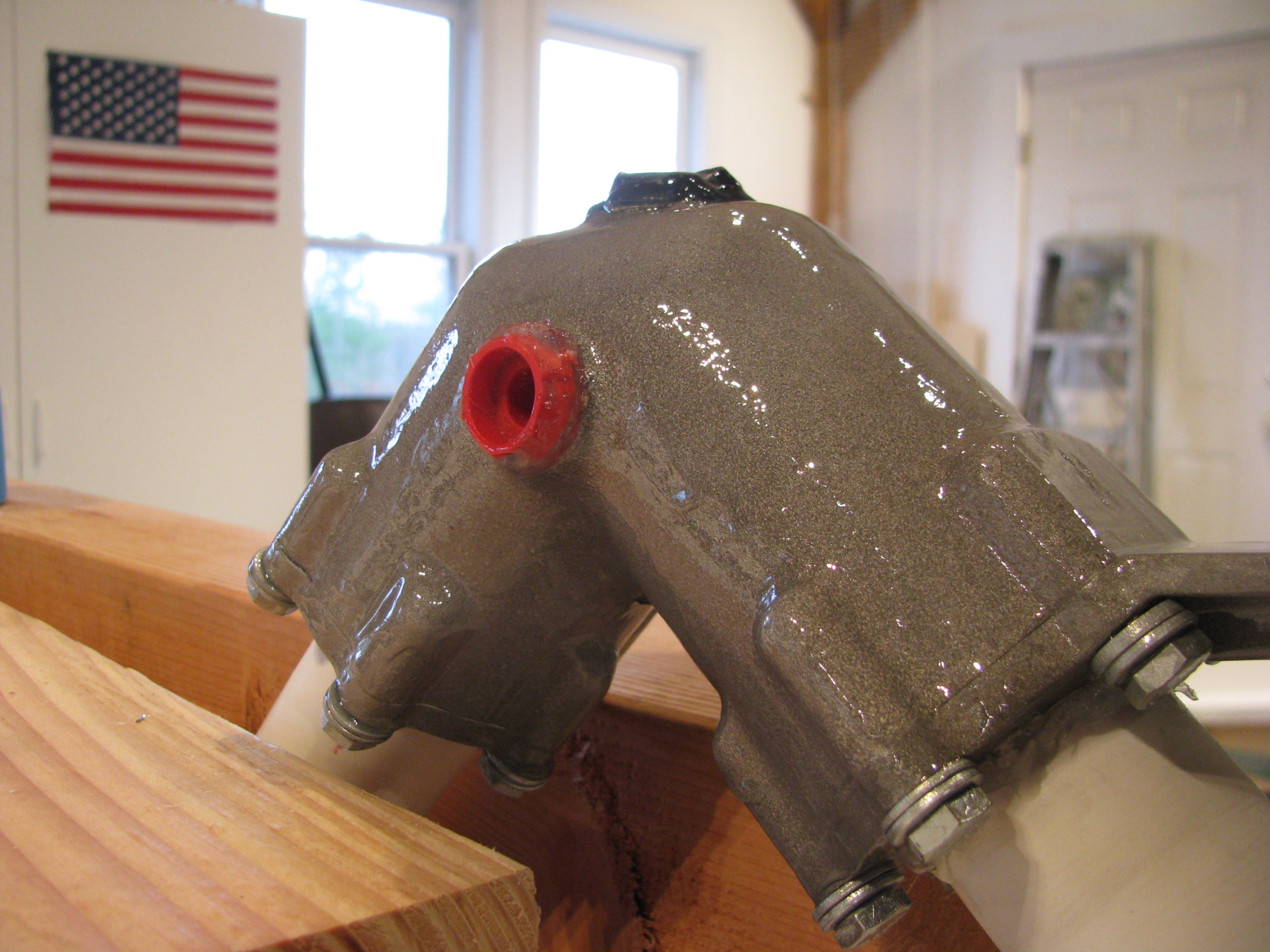 A light sandblast with 220 grit media to remove surface corrosion from the tube assembly and VHT single-part epoxy paint. Seems like good stuff as long as you let it cure for the many days specified before knocking it around.
