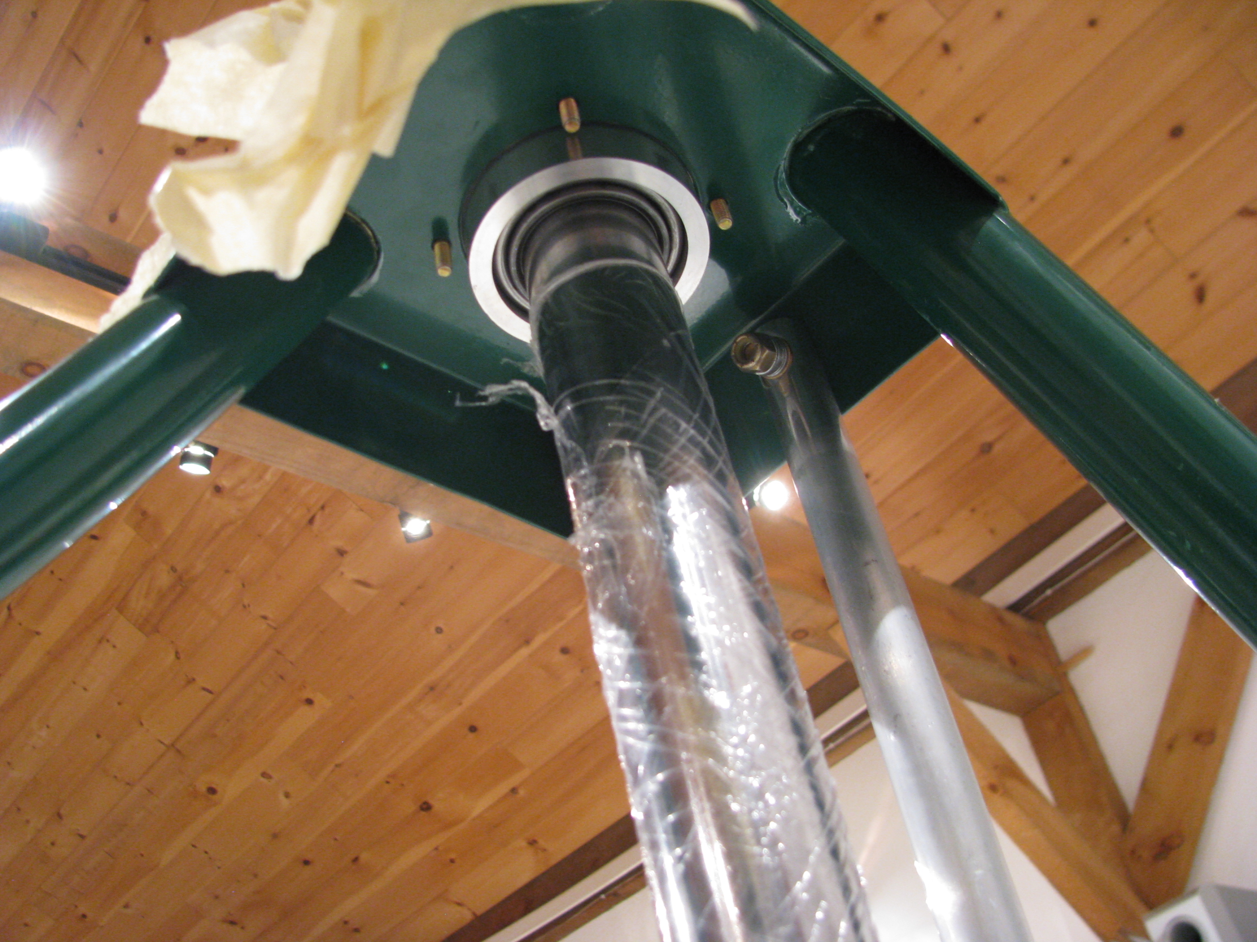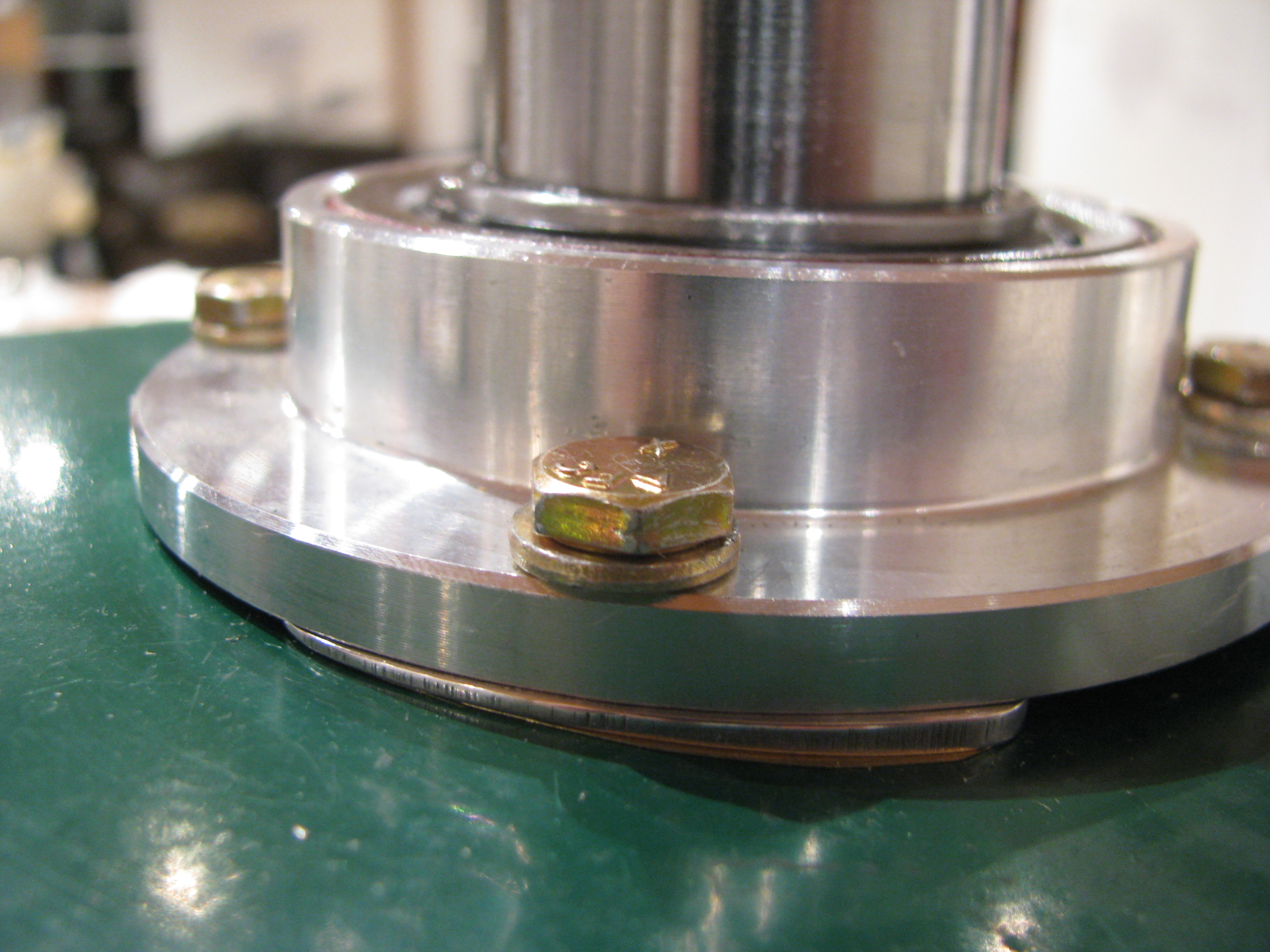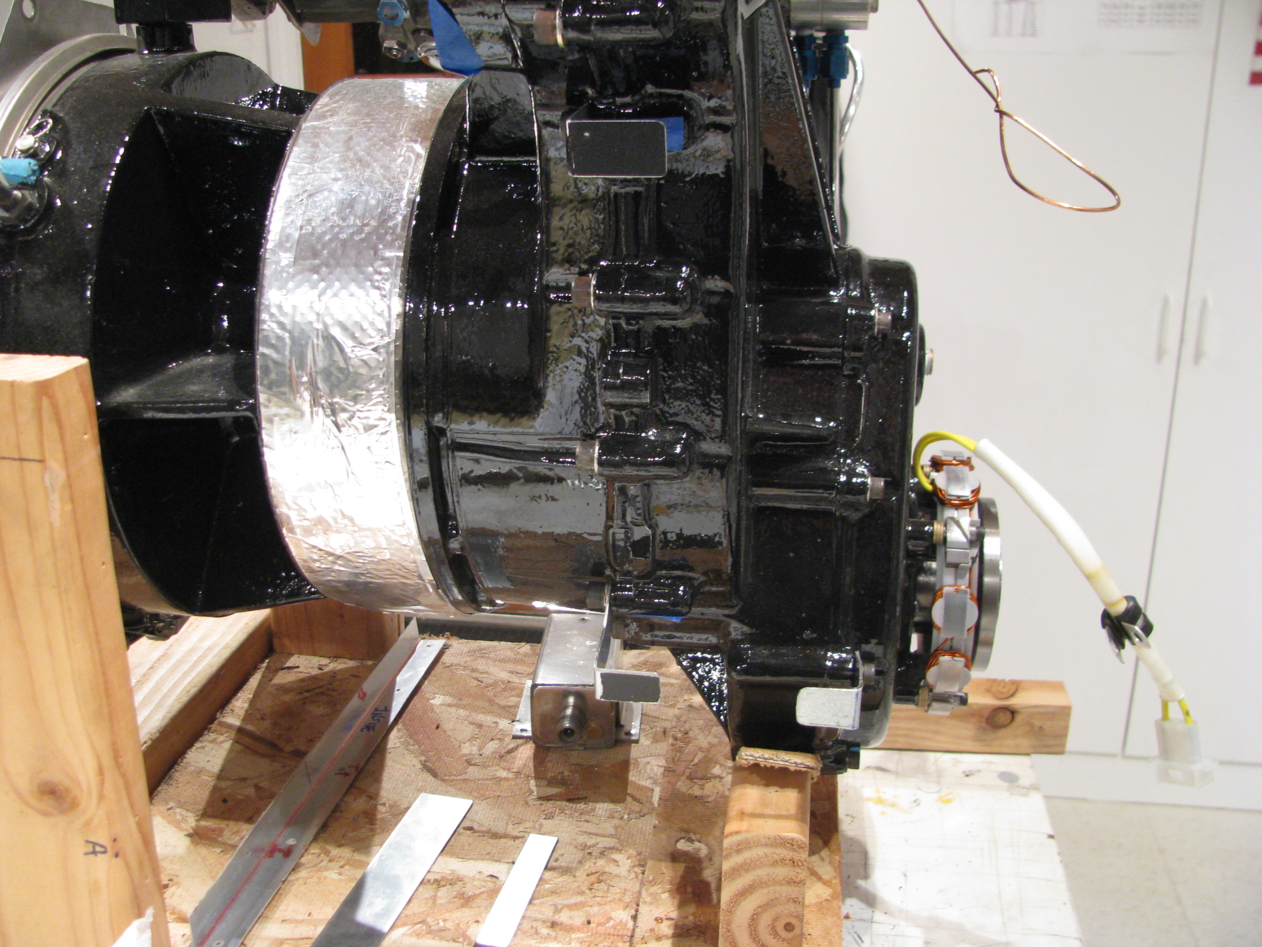 So here is the turbine in position after incrementally jacking it into position. It's very stable and certainly not going anywhere, so I can fiddle with alignment all I care to before locking it down permanently.