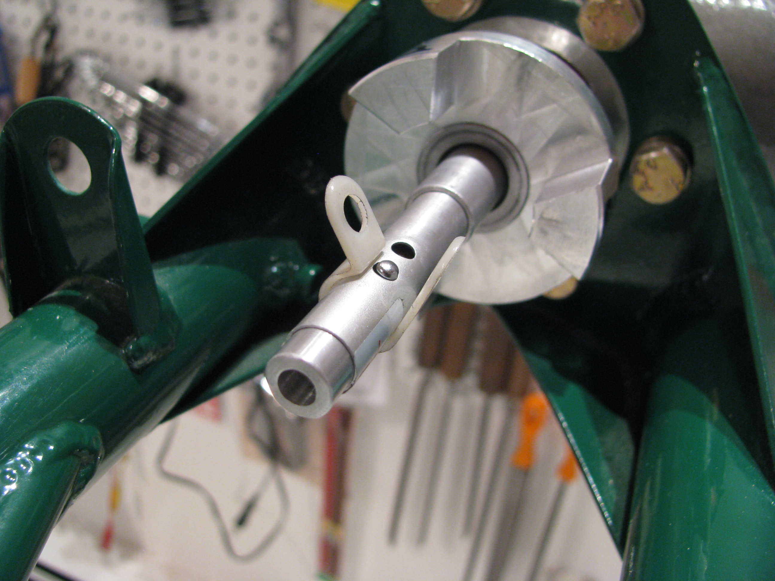 Start by drilling the end plug into the pivot end of the collective weldment. In the video BJ tells you to hammer a bolt into the aluminum plug. That didn’t quite sit right with me. So I lathed the bolt head down so it fit very snugly in the cap. The problem is that the “hammering” action is what would have held the bolt in the cap when the nut is tightened. Since the bolt is the pivot for the collective shaft it is not snugged down super tight. If it were to ever loosen up in there; a) There would be slop in the control, and b) it would be impossible to unscrew the nut off the end of the bolt.