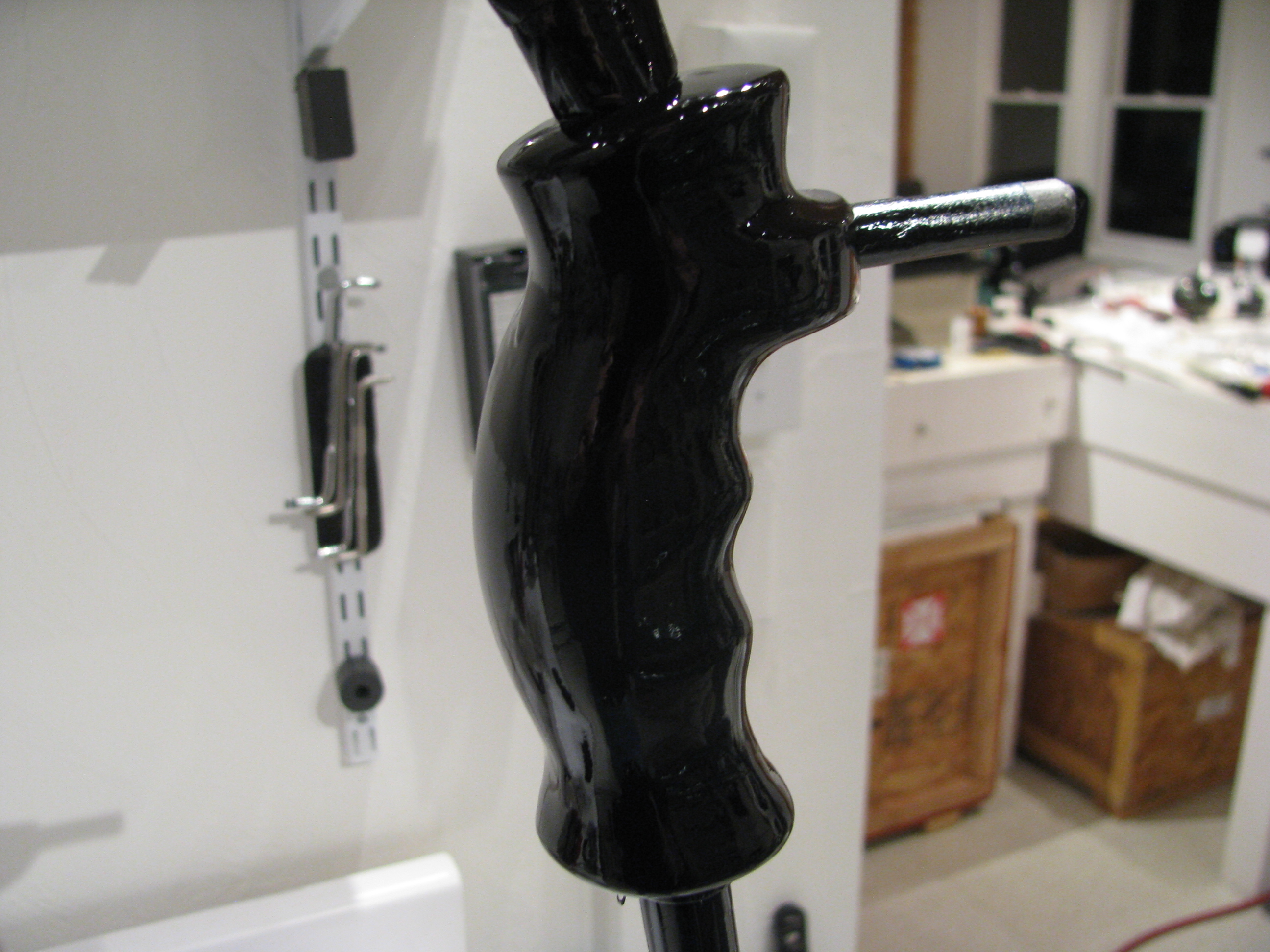 The completed throttle/collective assembly ready for installation into the ship. After experimenting with a few different grips, I ended up with one I bought just like the one BJ provides in the kit. It’s a Harley OEM-type throttle grip. None of the others I bought seemed appropriate for a Helicopter.