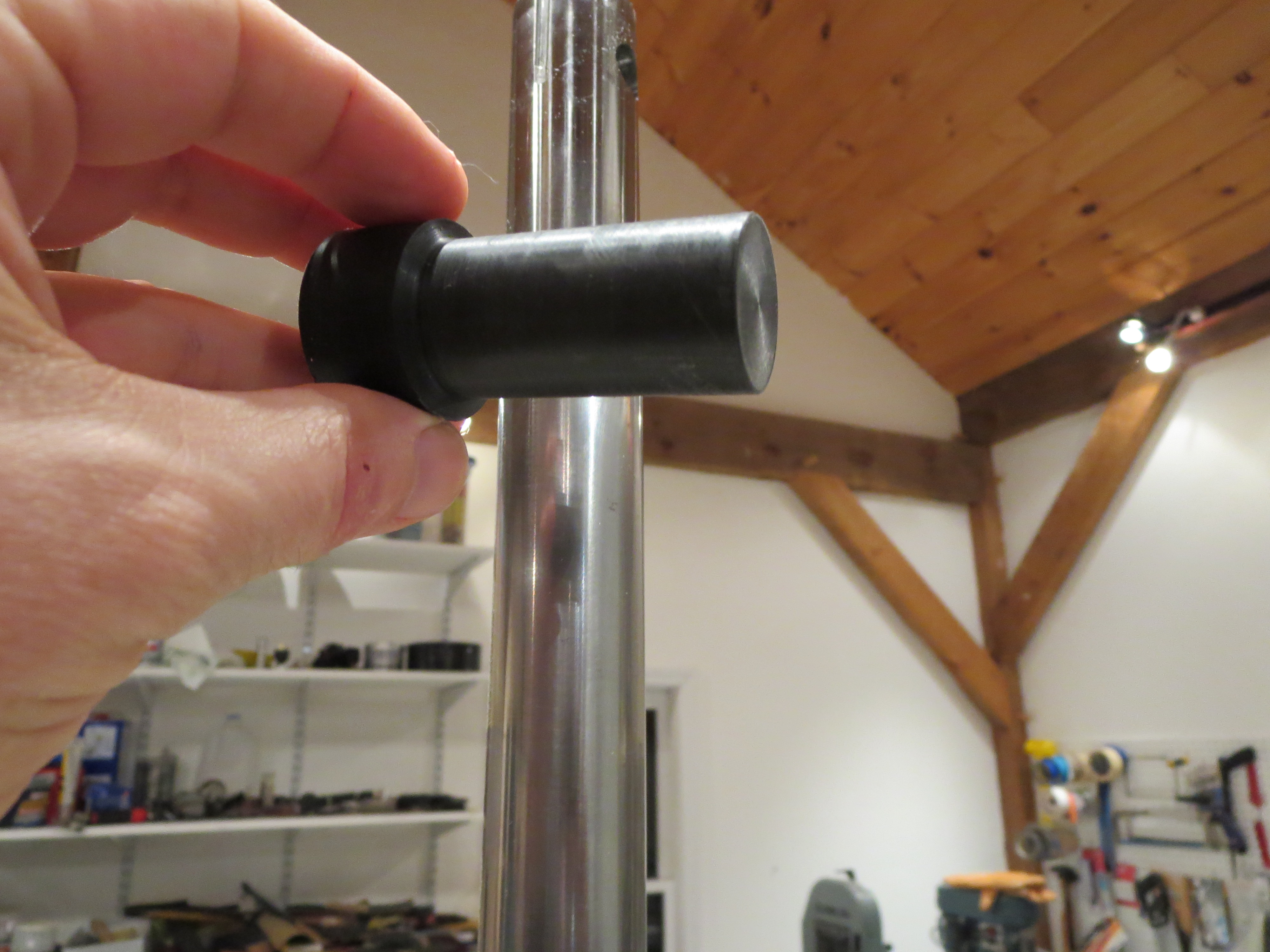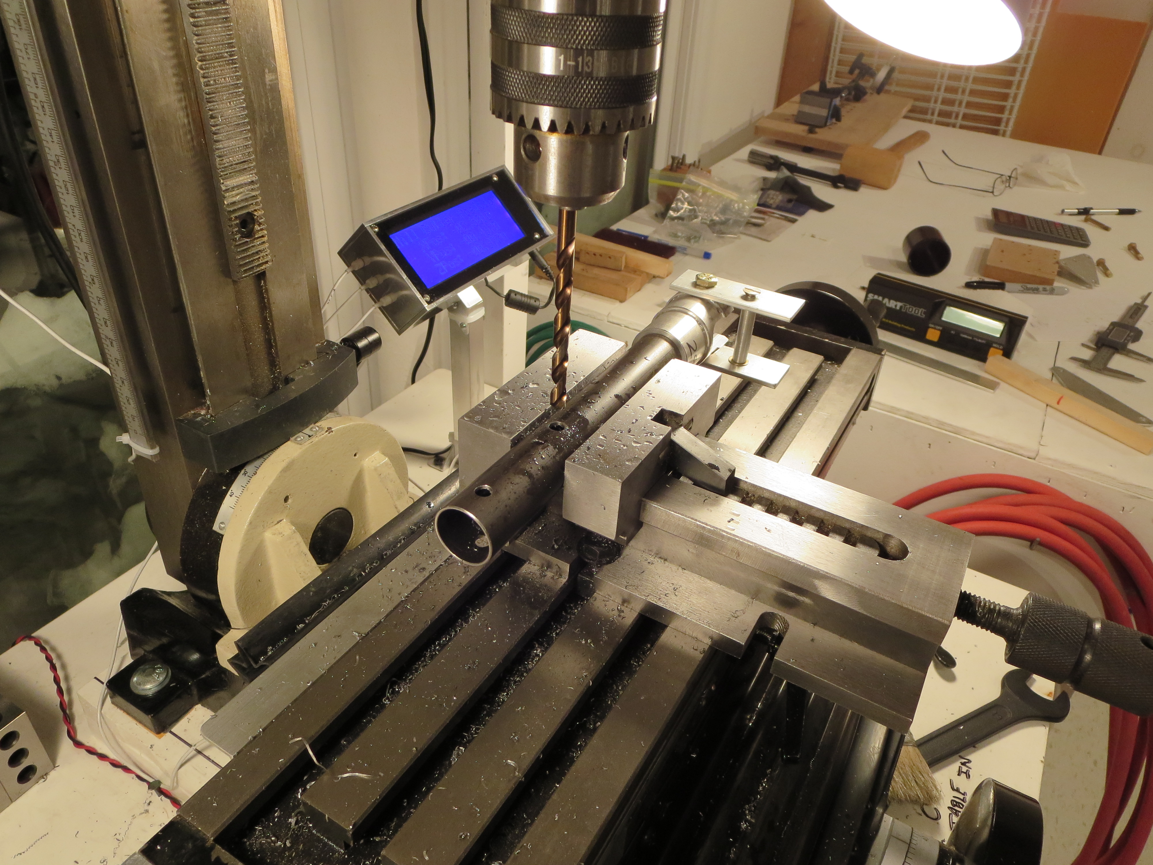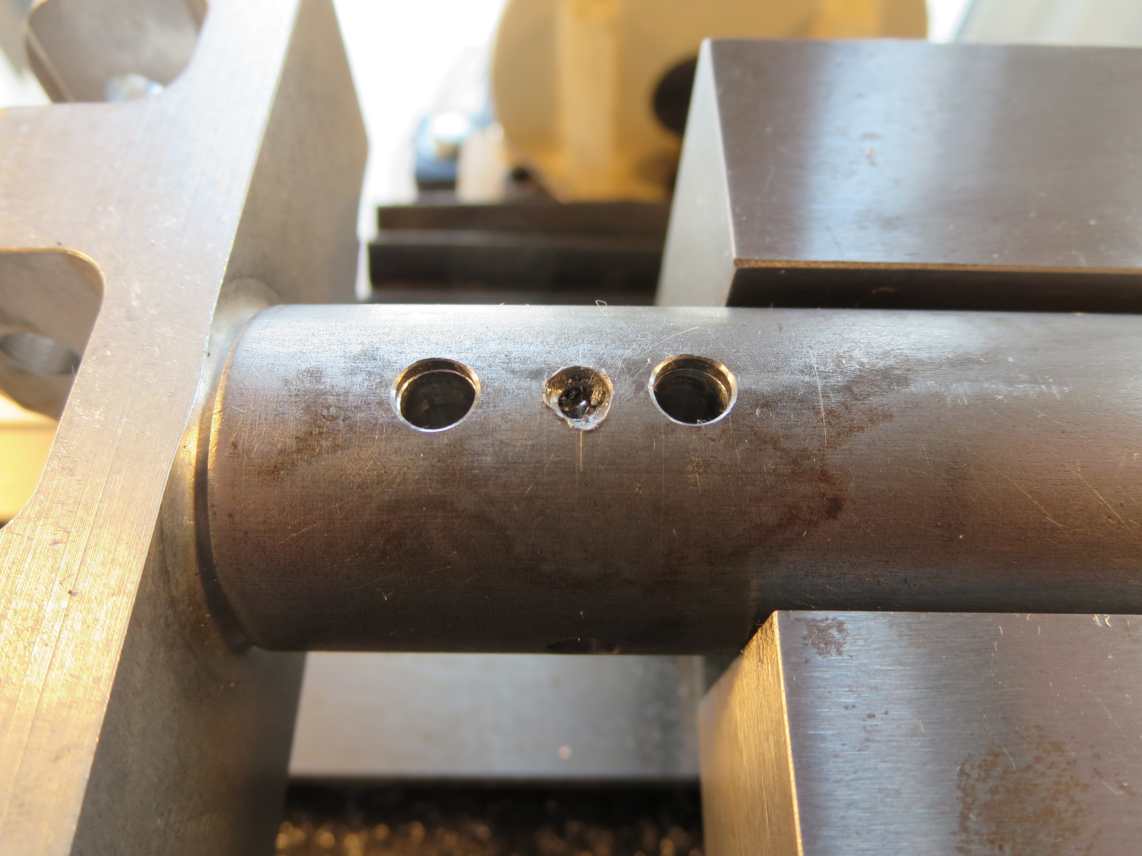 Had to sand the interior of the tube where the travel limit bracket was welded on. There were a few bumps where the tube deformed slightly while welding. Now the fit is snug, requiring just a light tap with a screwdriver handle to fit. Then I drilled the keeper bolt. Again, the mill/drill allows for a nice clean, square hole.