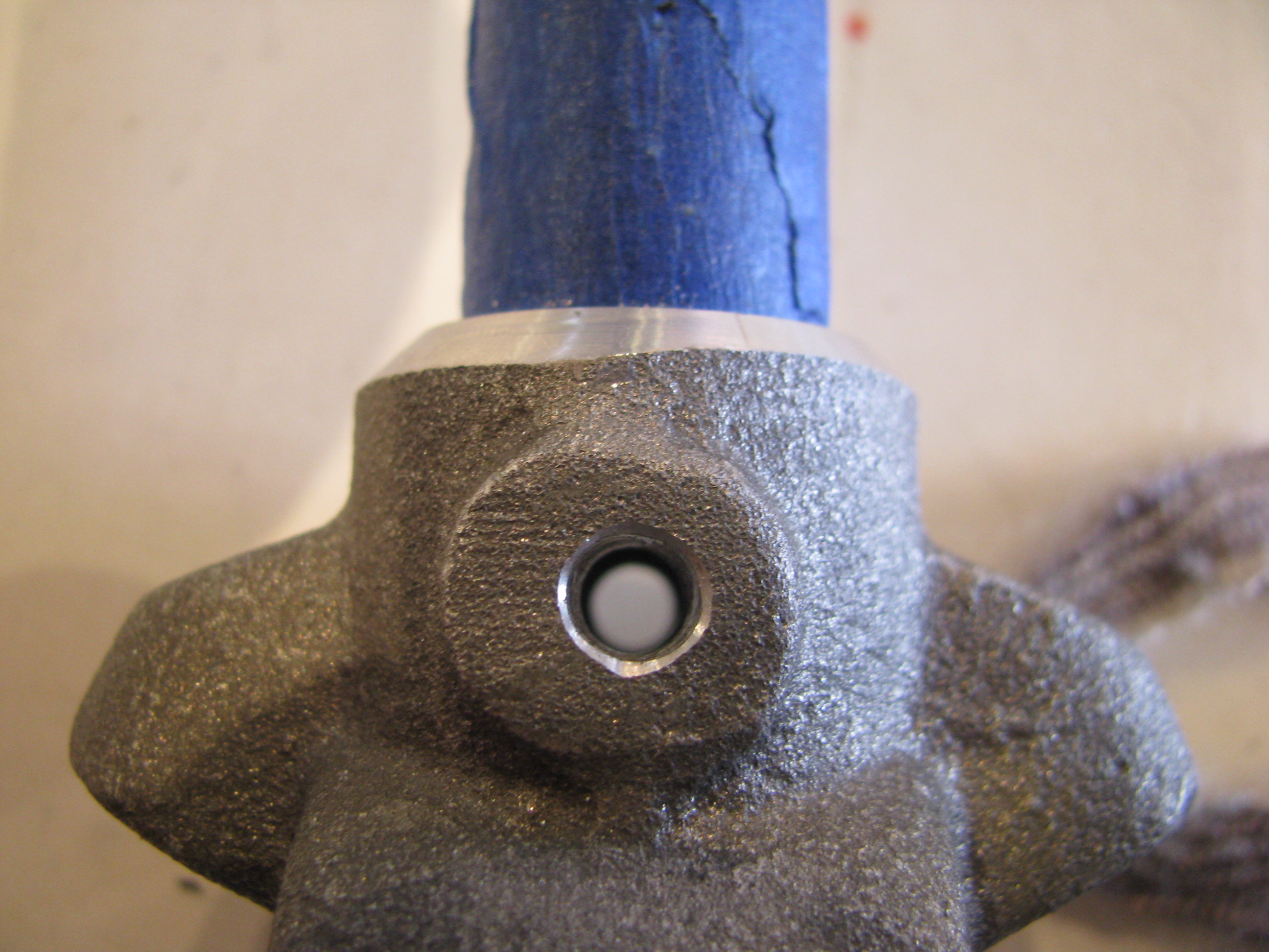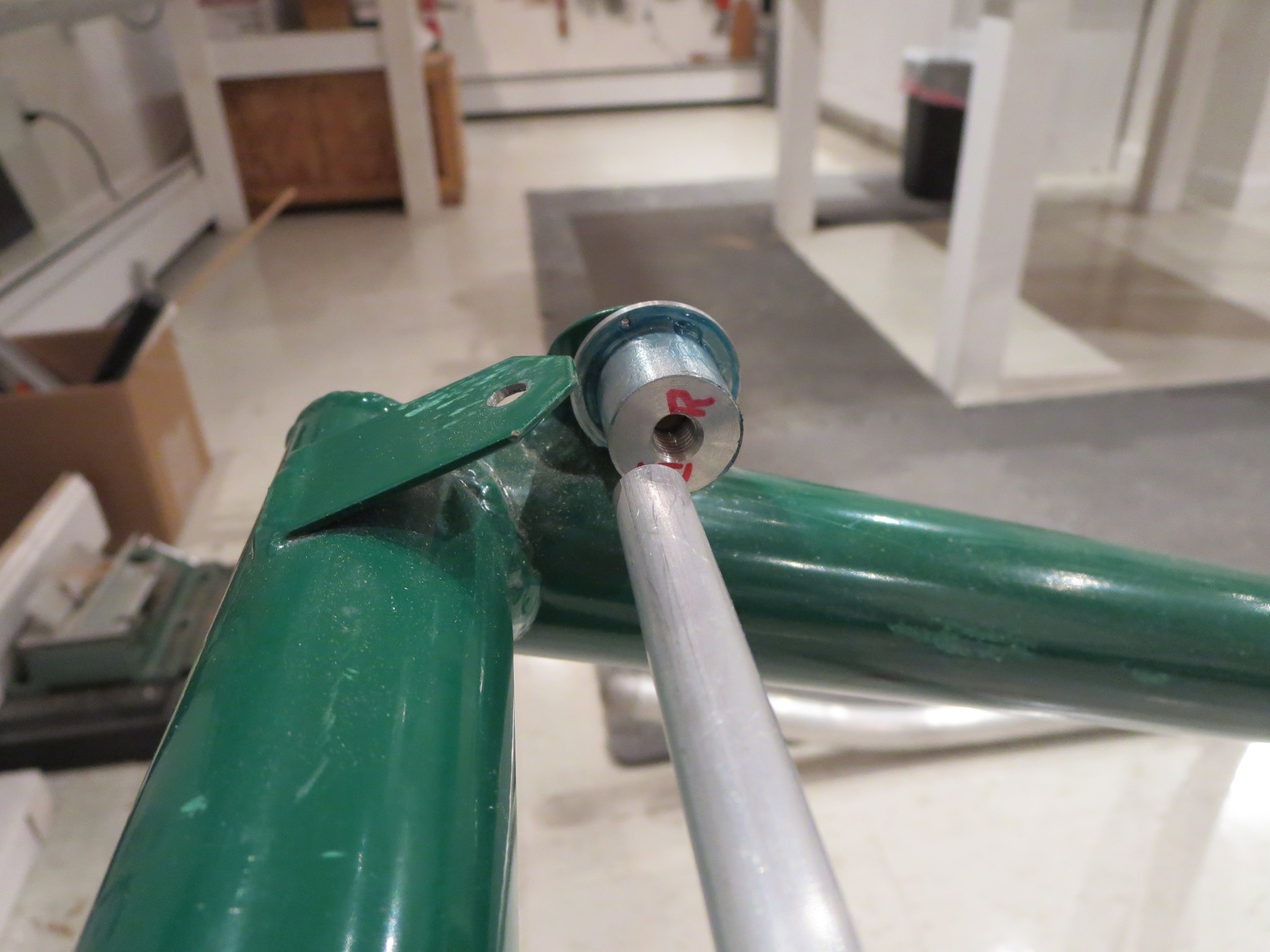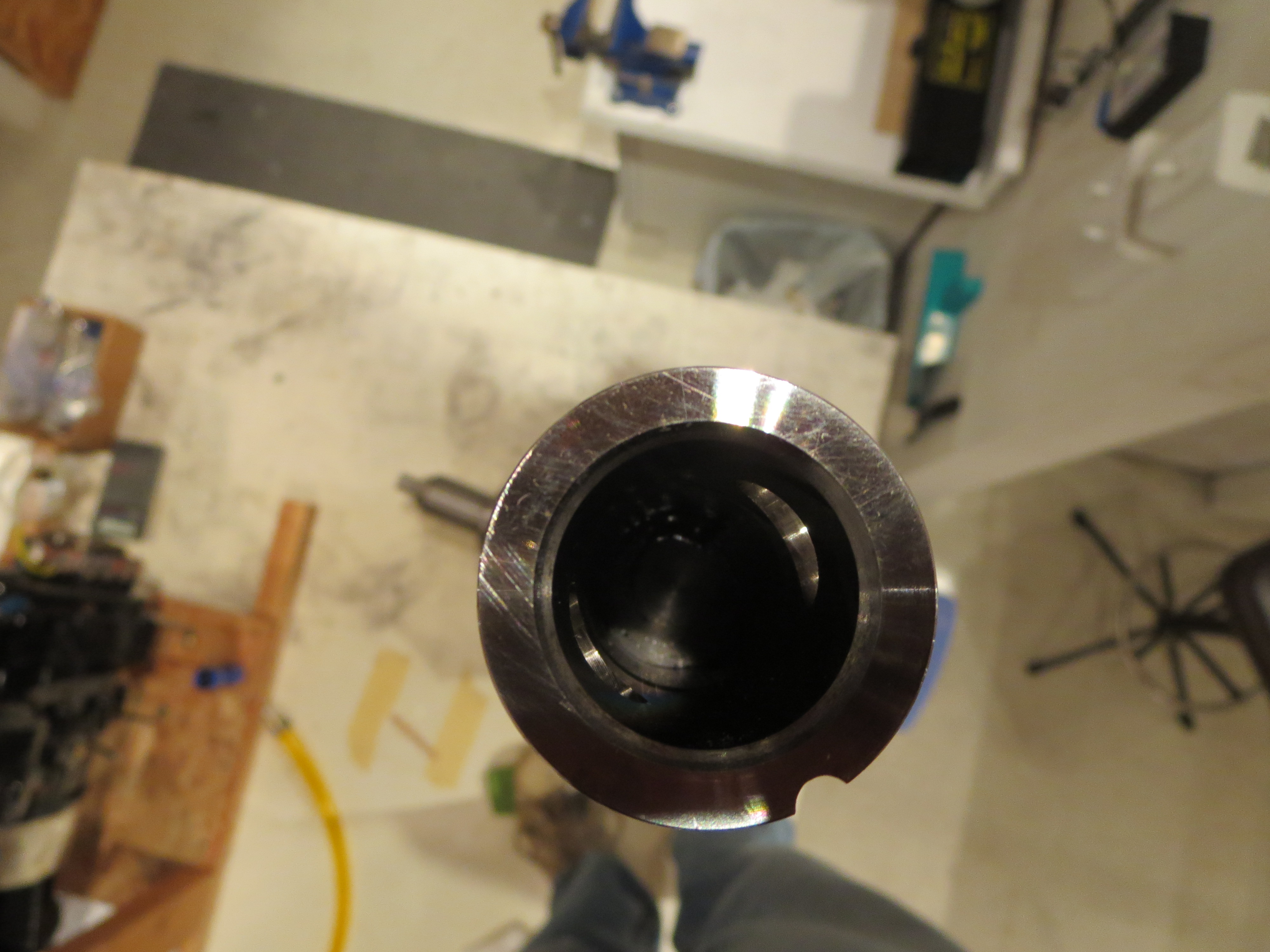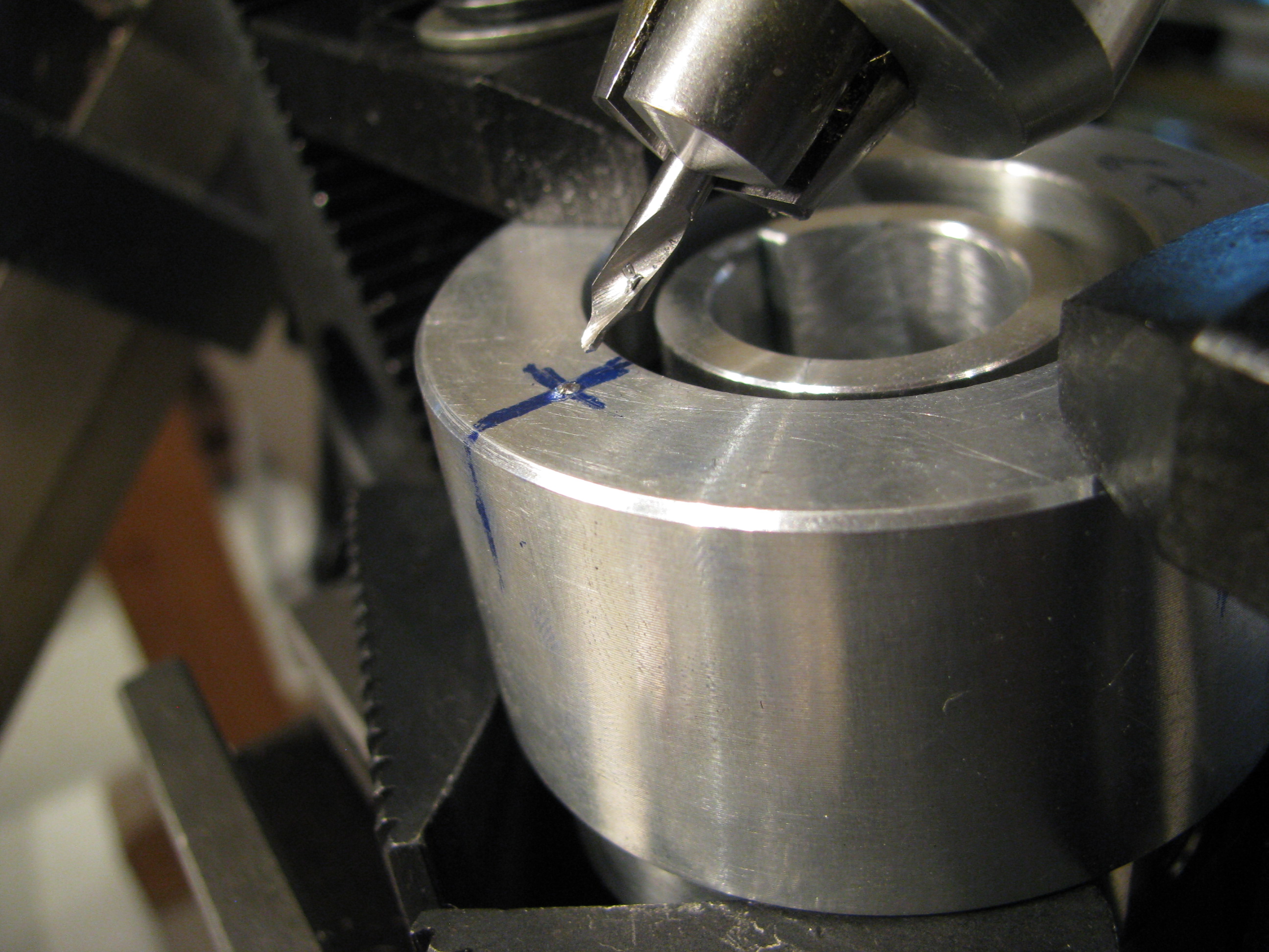 Had to sand the interior of the tube where the travel limit bracket was welded on. There were a few bumps where the tube deformed slightly while welding. Now the fit is snug, requiring just a light tap with a screwdriver handle to fit. Then I drilled the keeper bolt. Again, the mill/drill allows for a nice clean, square hole.