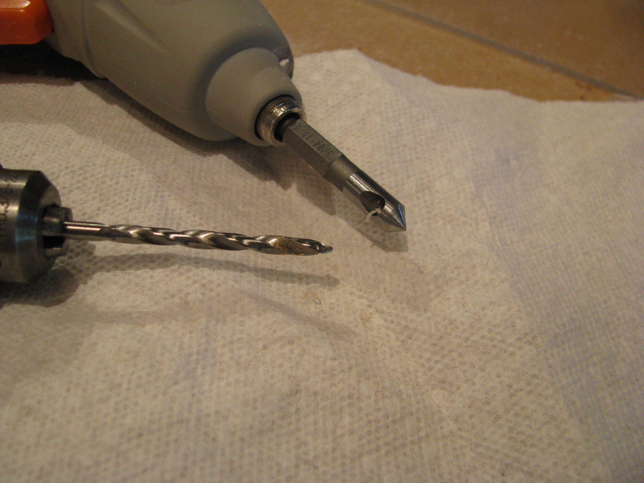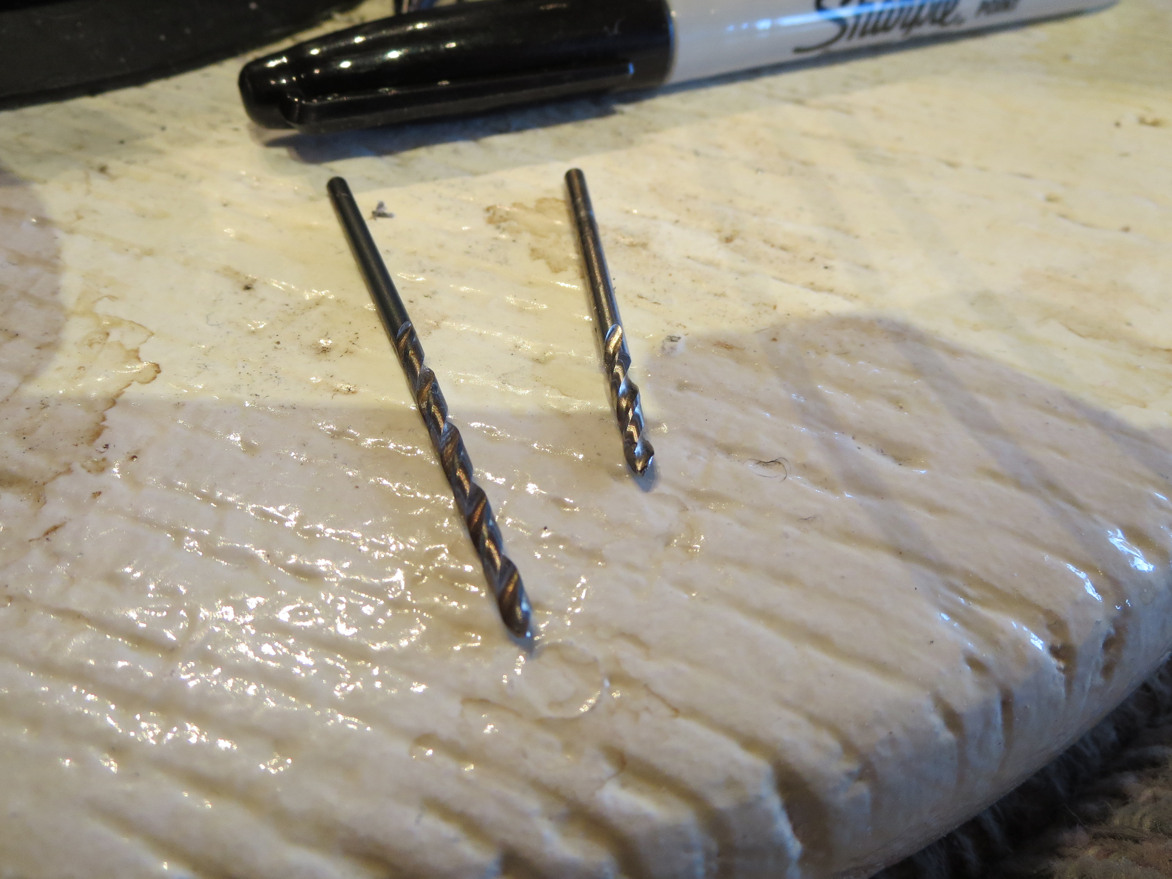 It’s a whacky angle since you definitely want to miss the interior features of the slider, but want the holes to pass through plenty of “meat” on the slider to stay strong. In both cases I was within 1/16 of my planned exit hole while drilling. Not bad. Start very small and work up very gradually, “steering” the smallest bit on the first cut.