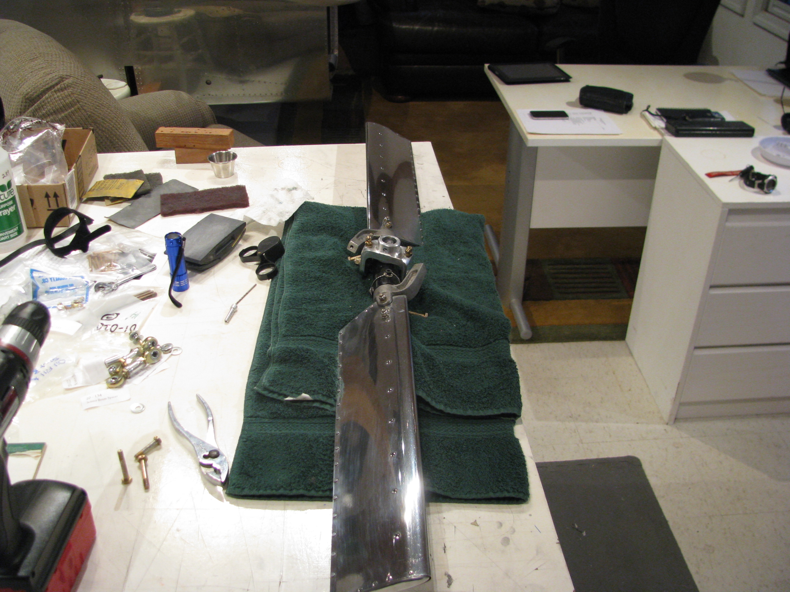 Busy month. I finished refurbishing the garage, which is quite full at this point with the RV8A still in there, and all the fittings for the new project. I painted every surface white, and discovered something really cool. Periodically Lowe's has some killer deals on pre-fabricated bathroom cabinets. A couple of sections of those with a pre-fab countertop makes a nice workbench/storage cabinet. I am sure it is not precisely, perfectly flat, but pretty darned close. I will shim and do all critical tolerance work on my flush surface in the downstairs shop. The project is all here. I received the rotor blades from Eagle. The only thing left from them is the turbine itself, which I have no immediate need for anyway, so delivery, though promised "soon" is not super critical to me at this time.