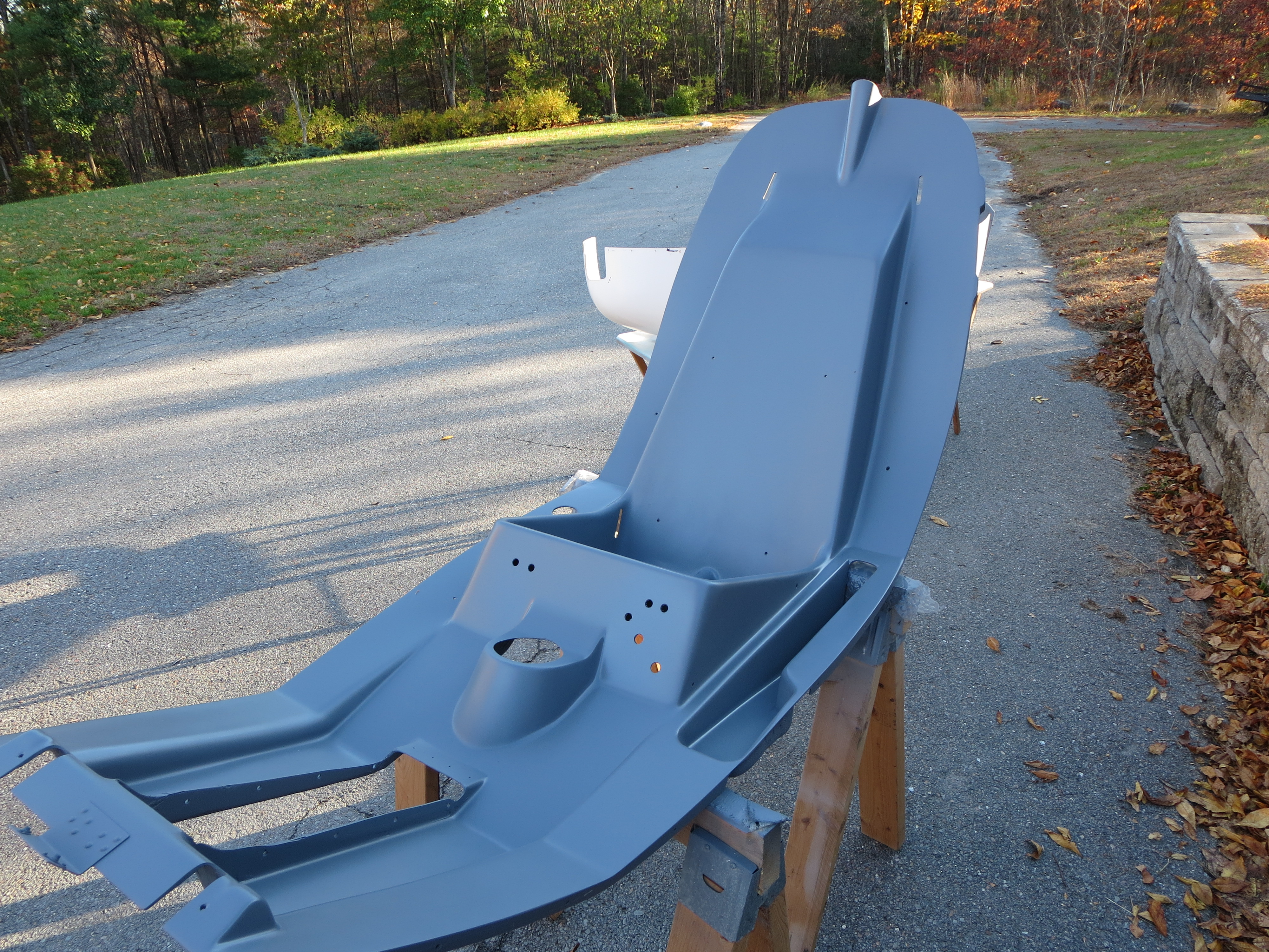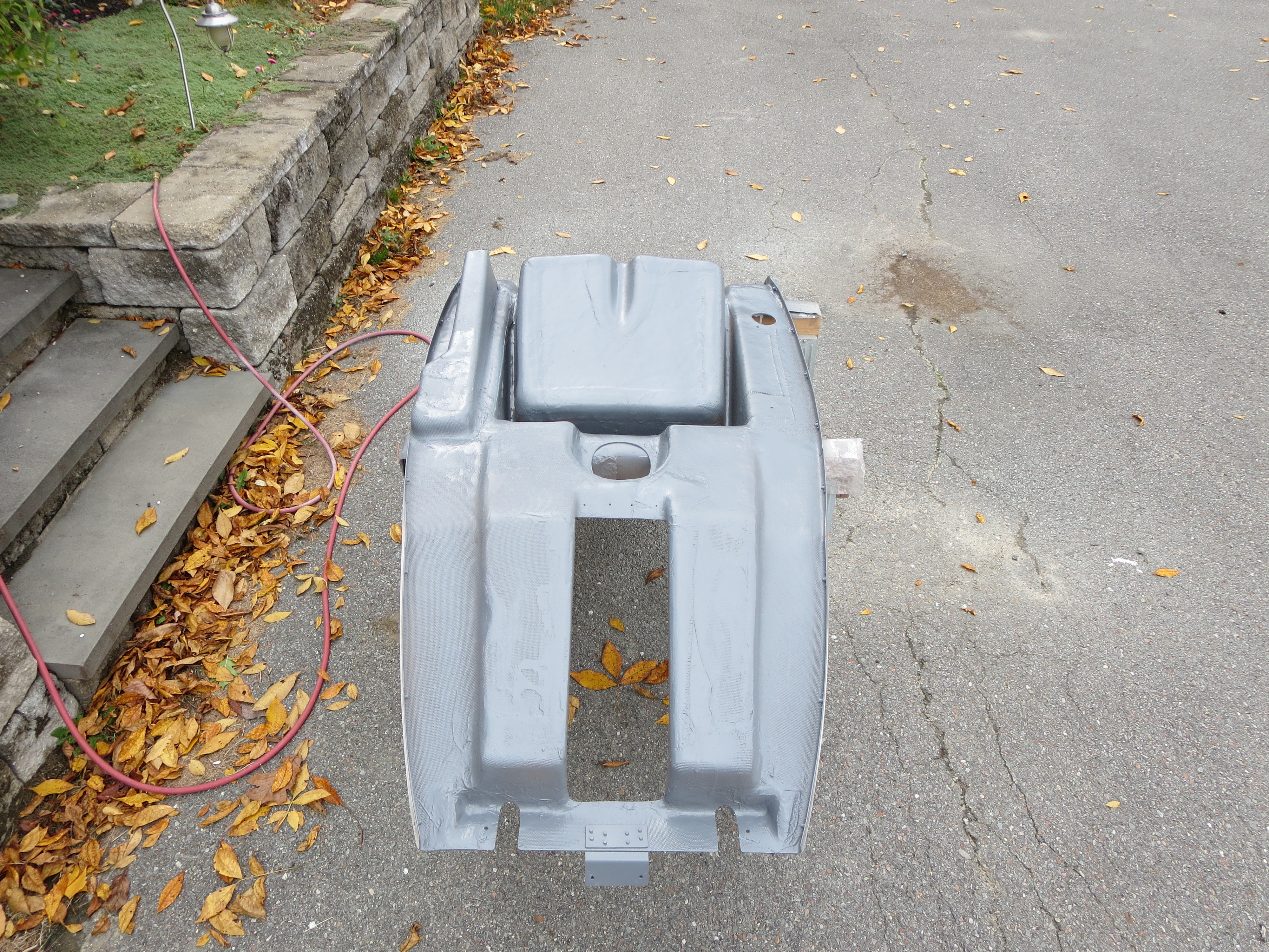 I have primed a bunch of stuff with only one real problem (see my SP priming entry), then I painted my fins and seat pan. The fins came out super-nice as did the seat pan. I was feeling like there were a bunch of pansies out there on the web, saying that painting was so hard and such an art form. If you read some folks descriptions it sounds like some god-like skills are needed. All of my things came out well enough that I was thinking there was not much to it. How wrong I was.