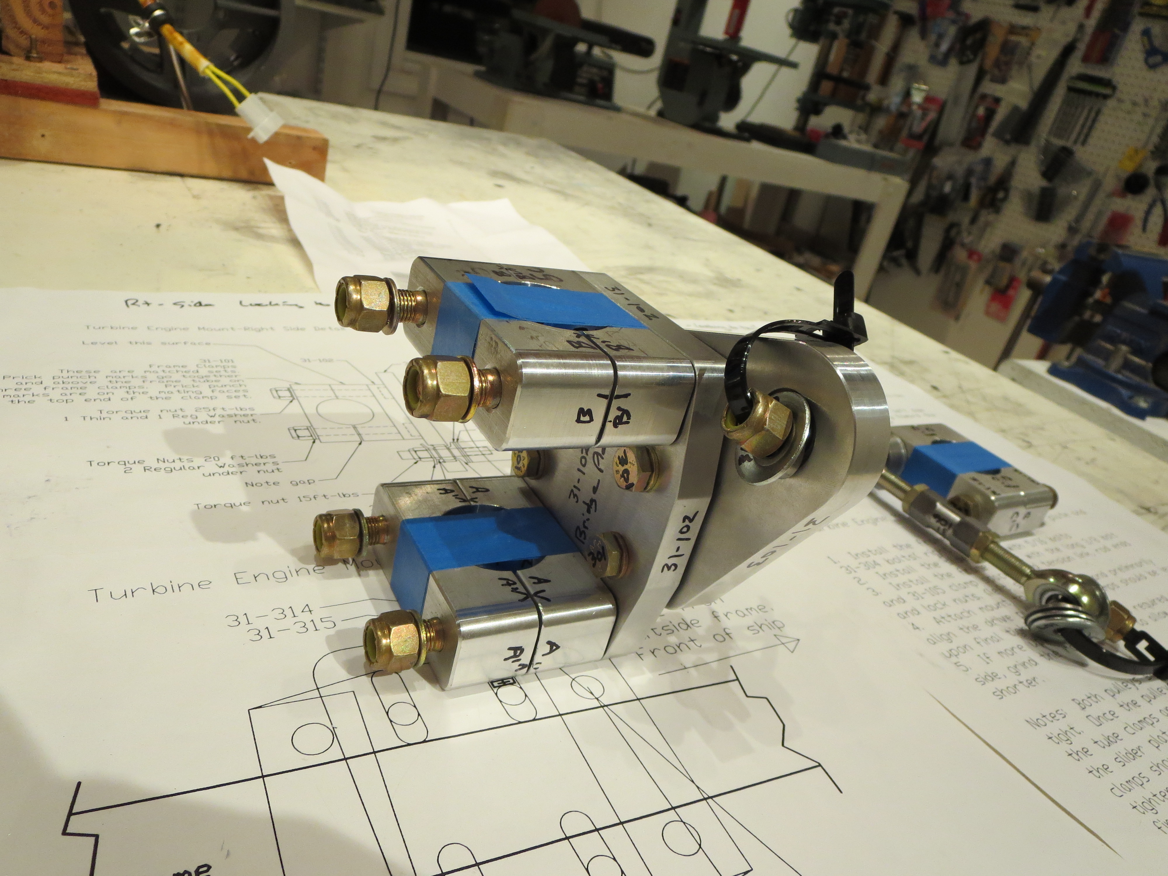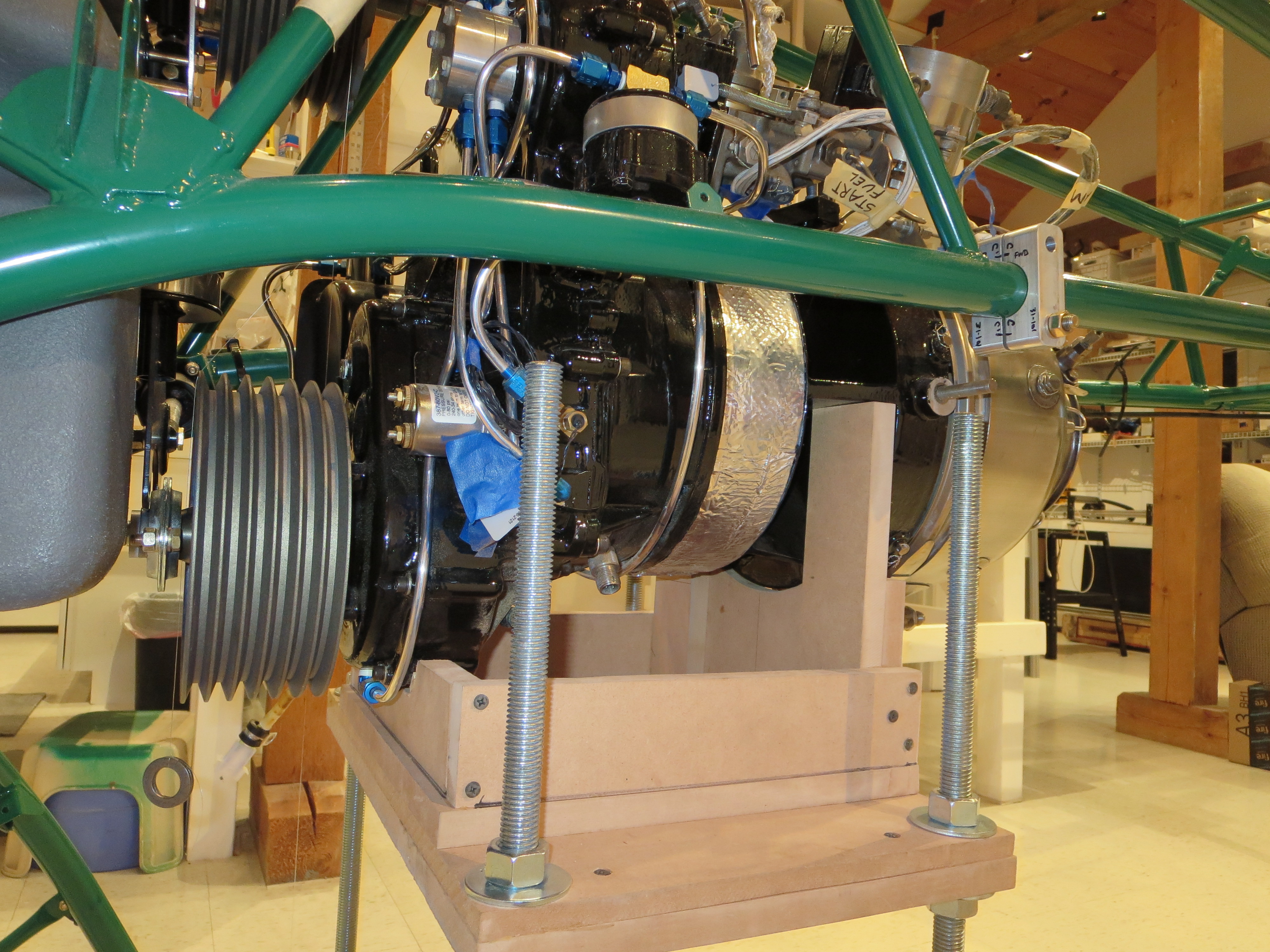 The idea is to transfer the turbine over to this jacking table and use the nuts to incrementally raise the engine up. Should be very safe and allow for very precise positioning.