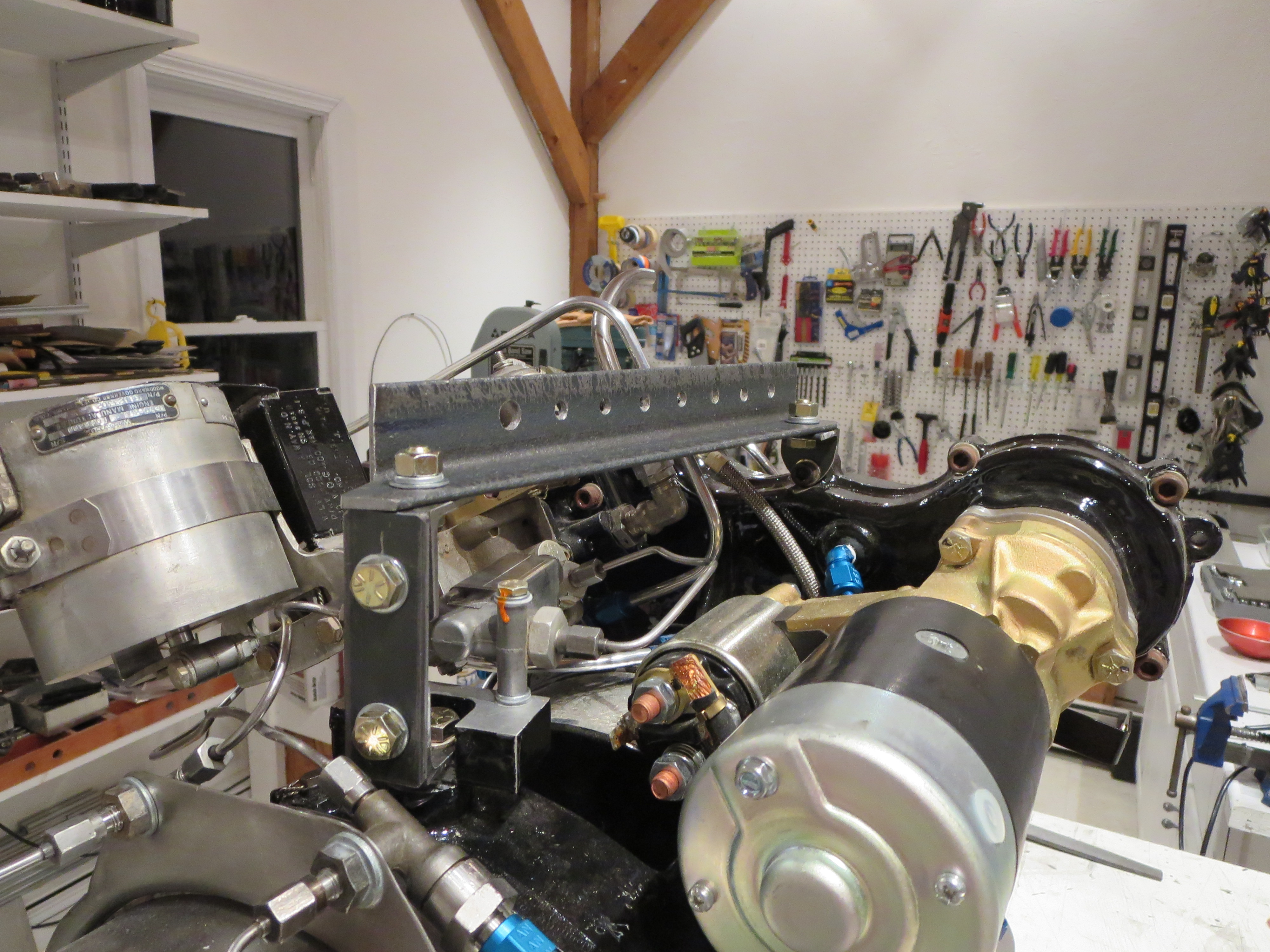 That's just some hardware store GR8 bolts and angle iron from Home Depot. I had forgotten just how nice steel is to work with. Drilled a bunch of holes since I do not know where the CG of the engine is. This way I can just hook on the closest balance point. If this were a permanent thing I would have used more and better mounting points, but it is a single-use, single-function item.