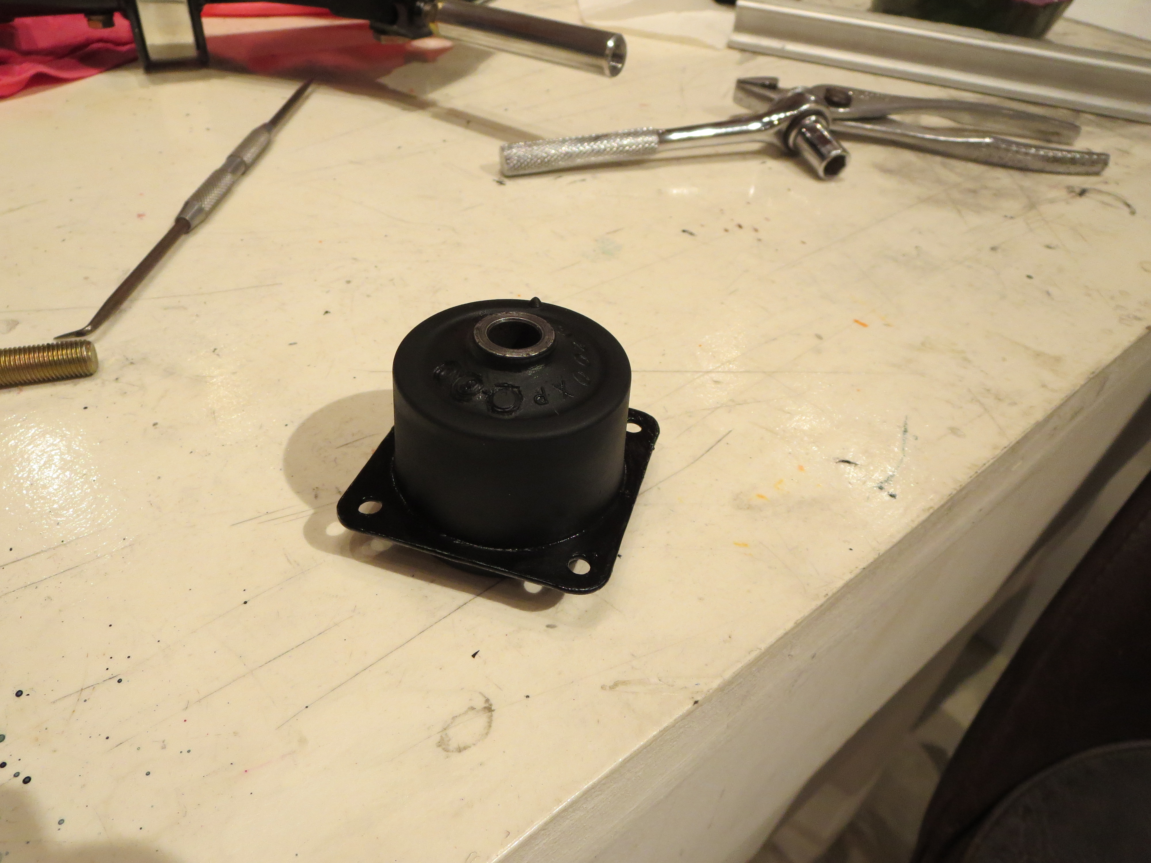 To prep the rubber clutch mount I coated it with Vaseline to loosen the mold-release skin, then rubbed it off the rubber, painted the metal plate (with diluted black nail polish for quick drying), then coated and soaked the rubber in Armor-All to keep the rubber "supple", and lastly coated the bore of the bushing with Corrosion-X. Again, probably overkill since I am sure many just bolt the darn thing in the ship without bothering with any of that.