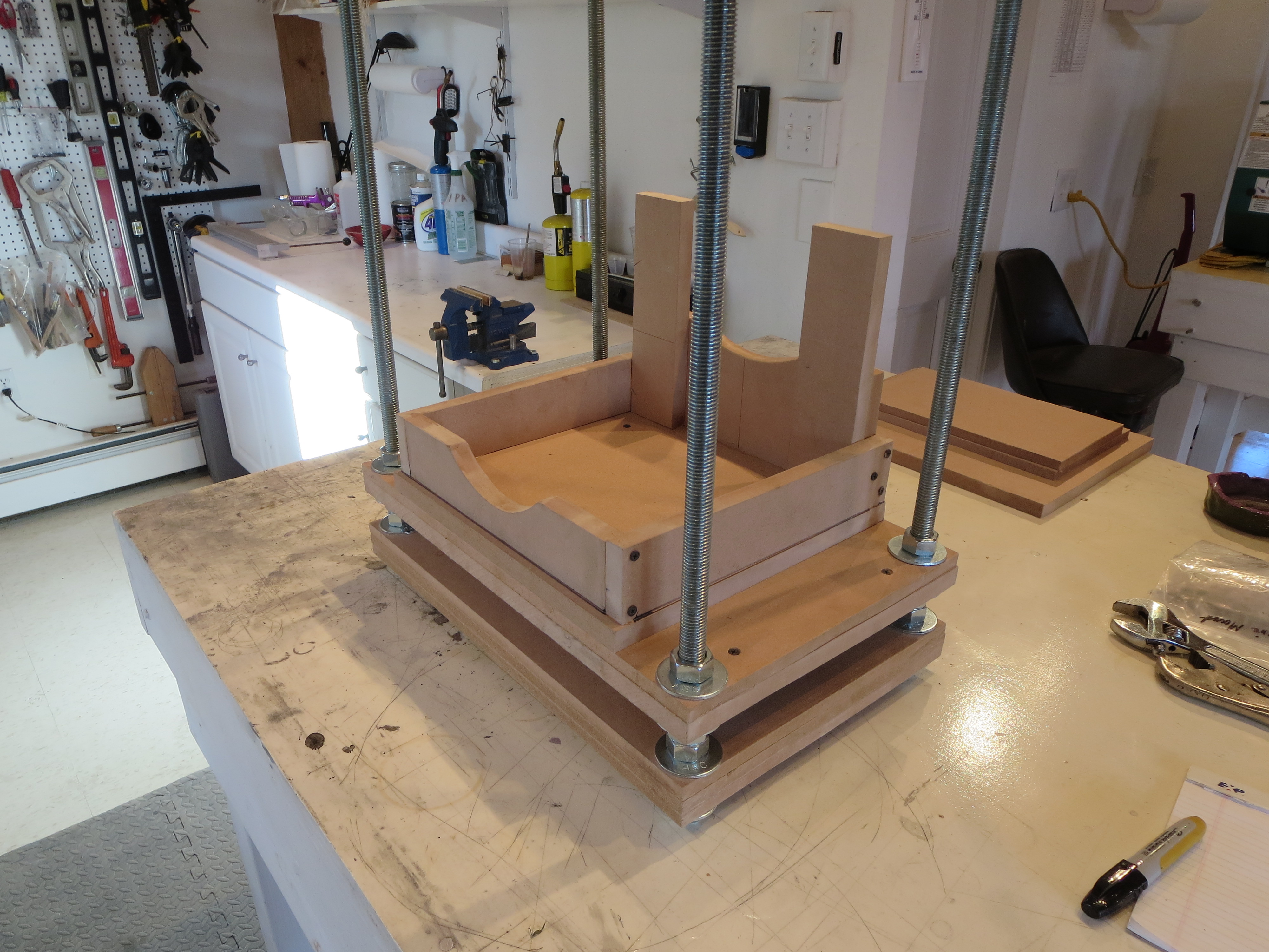 So I went to Home Depot and picked up some 3/4" threaded rod,washers, and nuts. 3/4" is certainly way overkill for the engine's weight, it's more for the stiffness so I don't need much more structure to keep the torsion and twist under control. I had a ton of MDF pieces left over from my CNC router project.