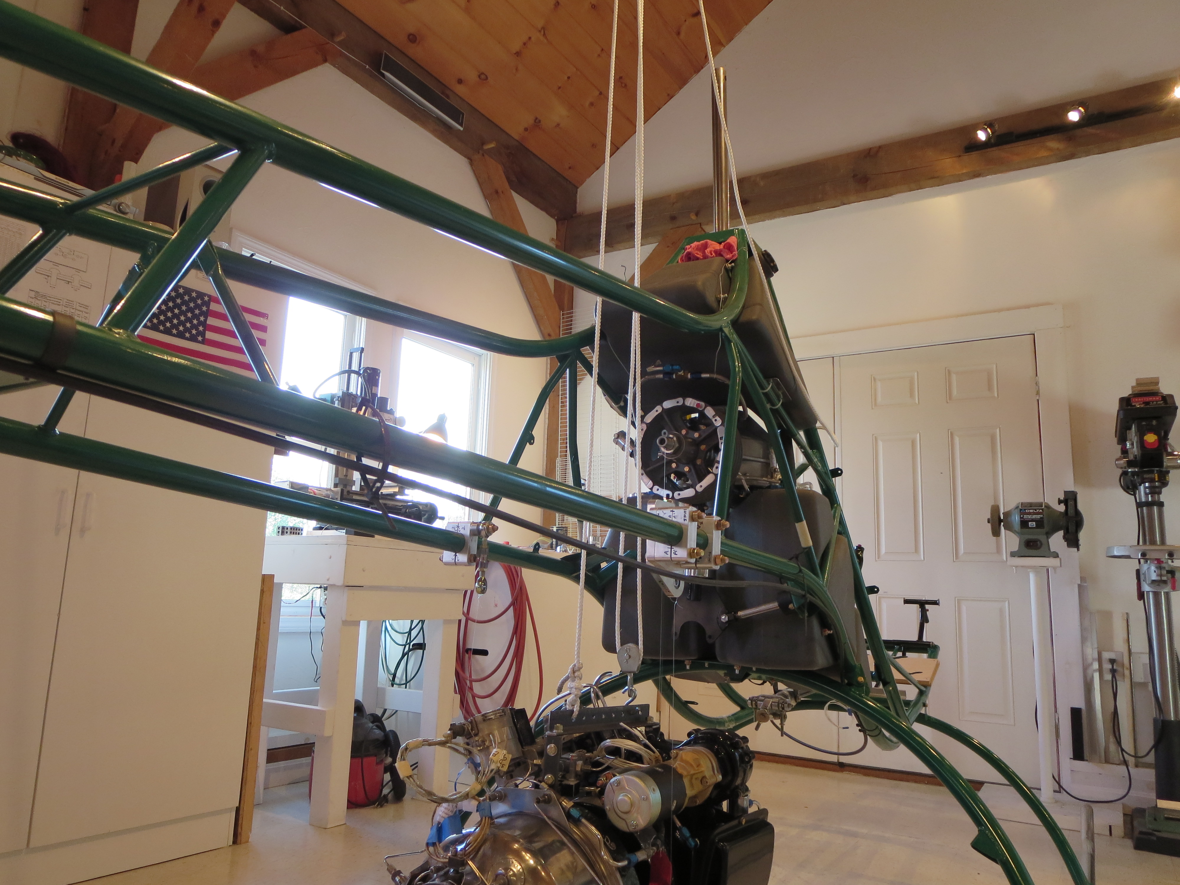 The engine went on the floor and I modified the cradle so I could just hoist it straight up and out.
