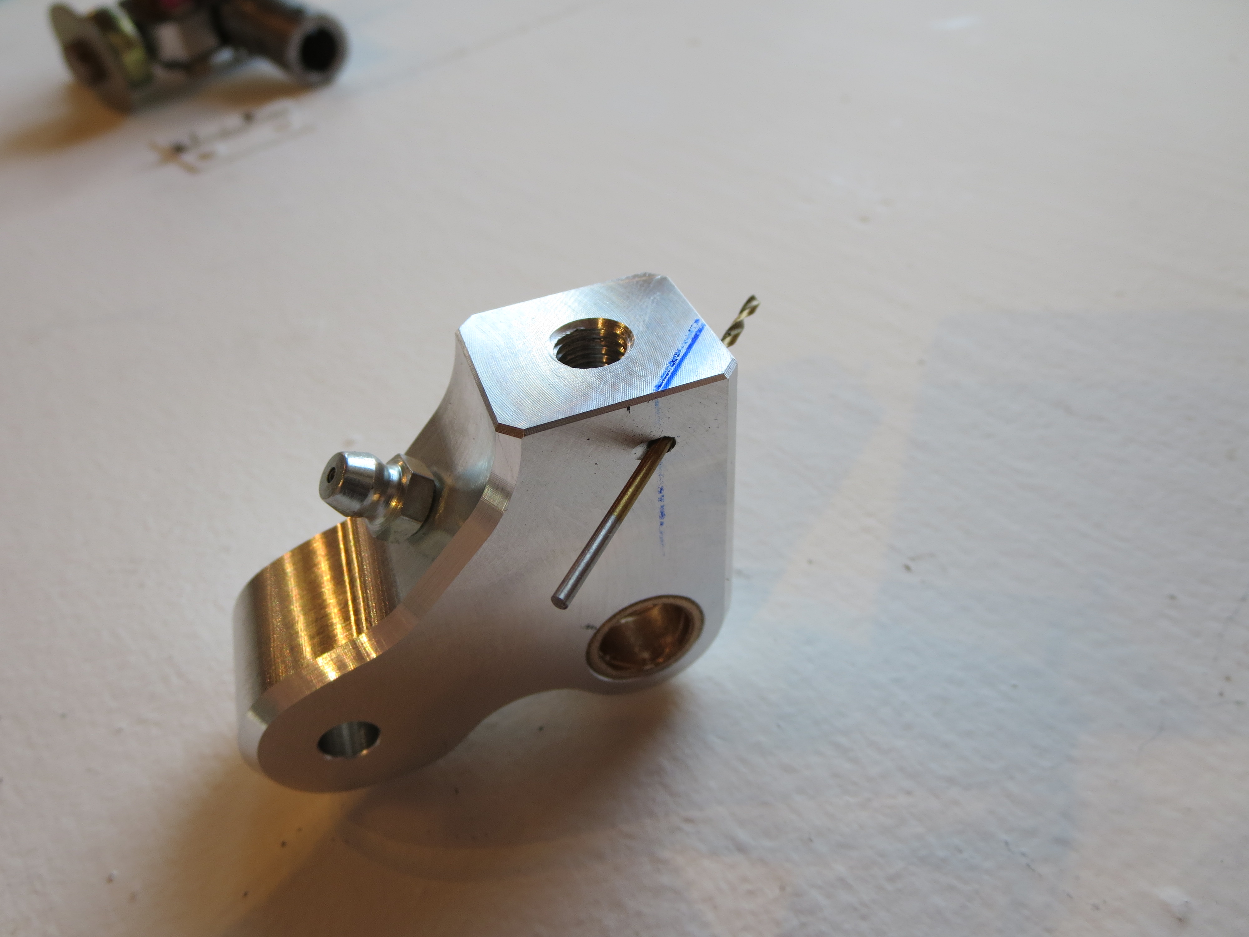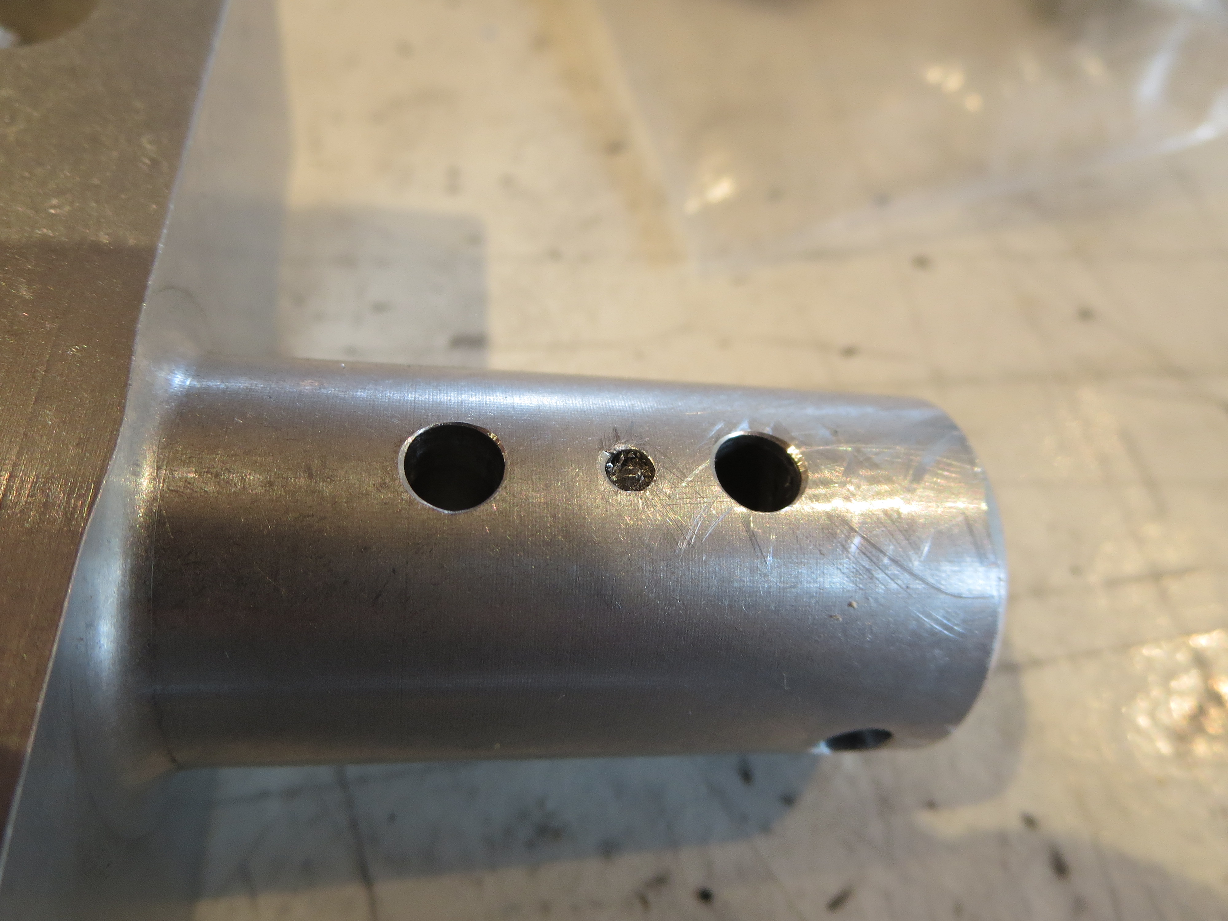 Another mistake. The bolt fit is kind of sloppy here, like the hole is maybe 1/64 too big. I don’t know whether I grabbed the wrong bit, or didn’t have the casting clamped well enough while drilling. I will first try a “close fit” aircraft bolt and then decide whether to bump up to an AN4 bolt.