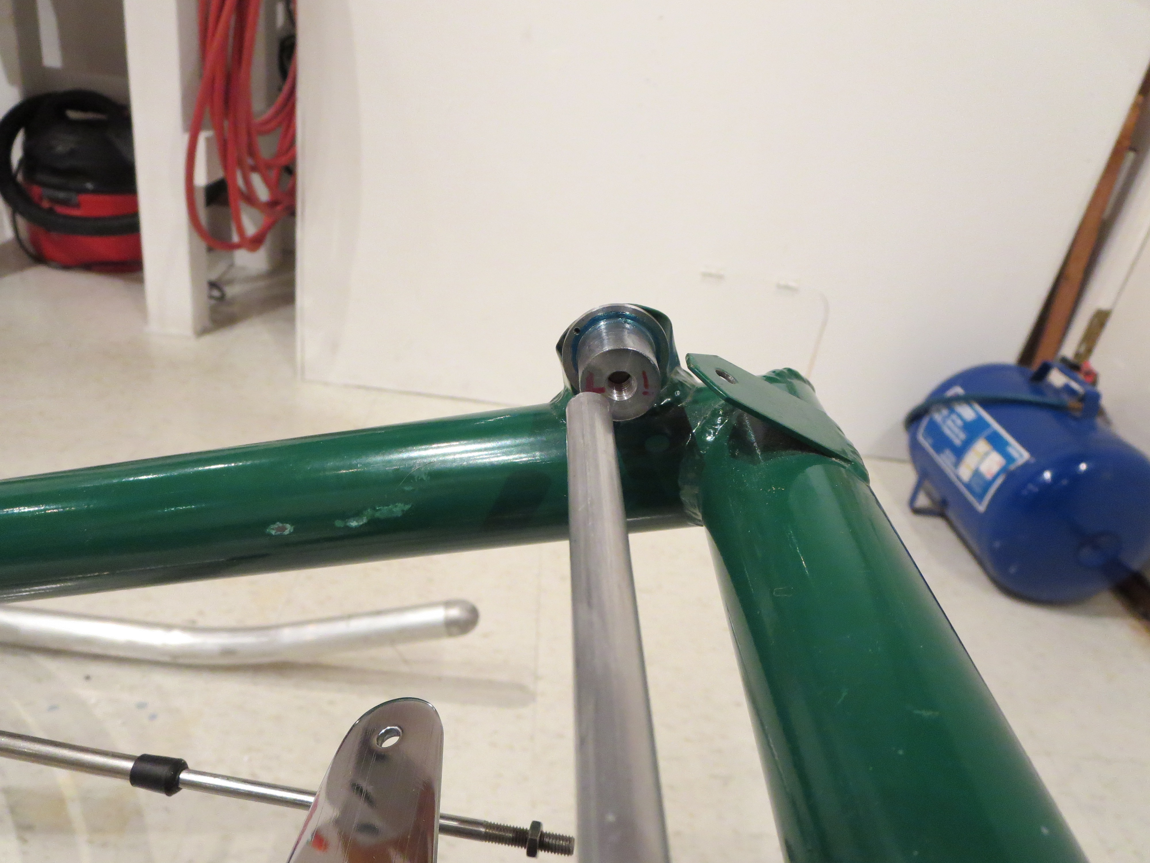 The steel plug for the front cyclic control tube was about 5-10 mils too large. Chucked it in the lathe and sanded it down a touch until it was very just very snug.