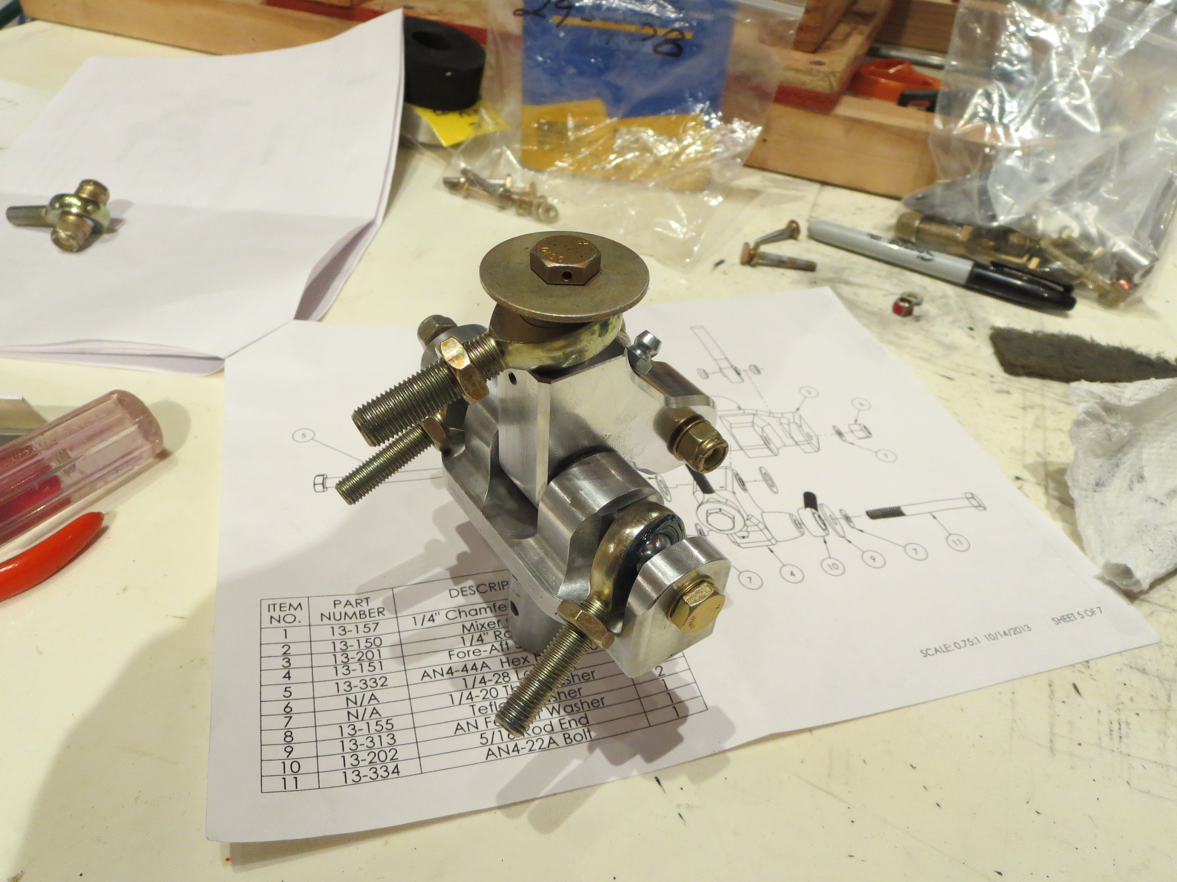 I am going to replace the ones in the kit (teflon insert) with plain copper inserts for smoothness of motion. Of course the ones I got were wrong. They are MM-5 and MM-5T. BJ uses XM-5 rod ends, which are heavier duty and larger. Crazy non-intuitive numbering system. The XM versions are not available at A.S. I had to order them from Wicks. The only possible downsides might be that the metal on metal requires periodic lubrication and might possibly cause some RF interference, but seeing as he used non-teflon rod-ends for all the smaller ones this can’t be a problem.