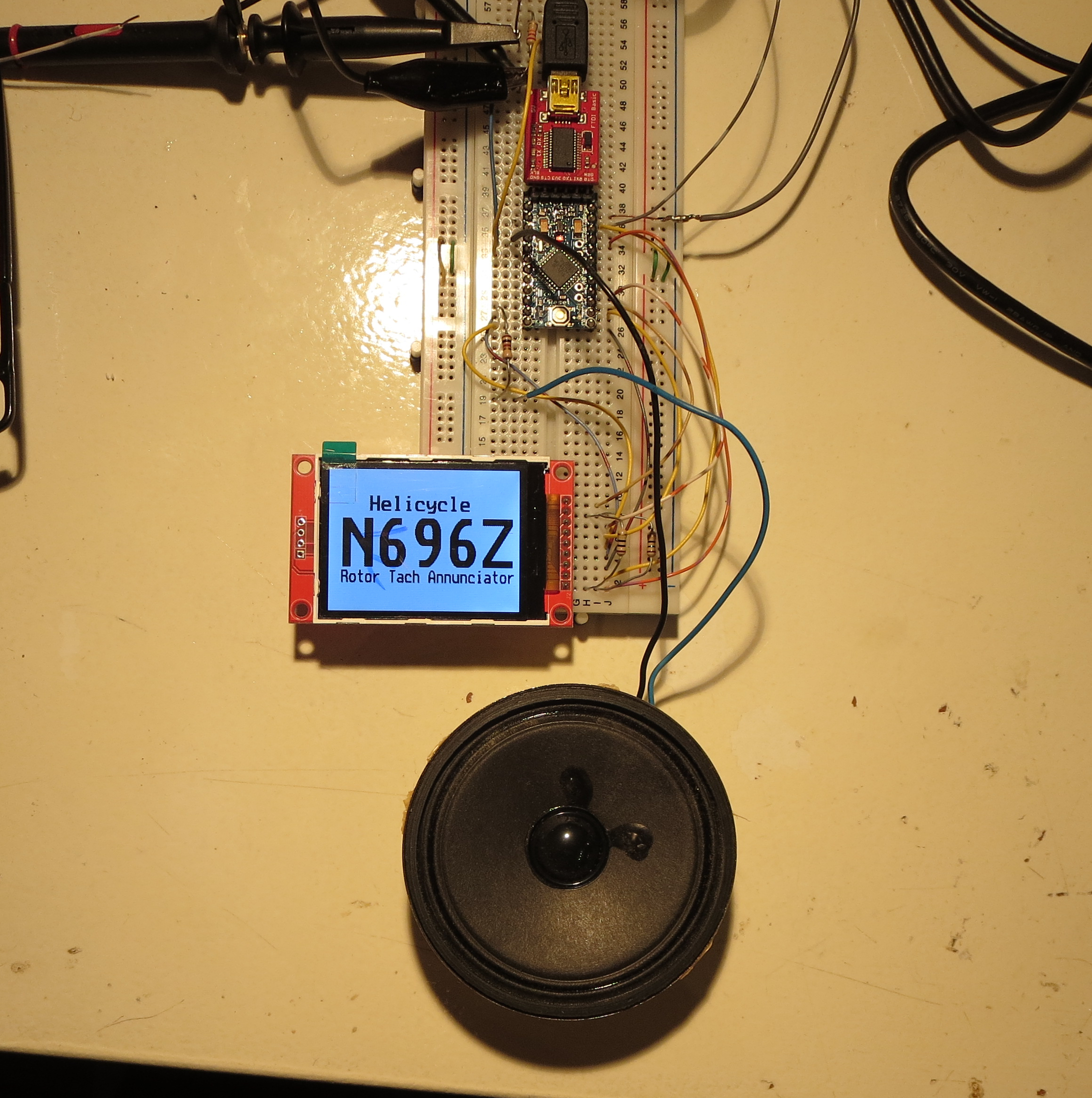 This is designed to be easy and very quick to read with an attention getting audio tone mixing in to the headset feed. I plan on mounting it on the top of the pod as it is critical to interpret this quickly during autorotations. In the final incarnation this will be packaged well and be brighter. The display shown here is a tired old one I have beaten and abused and use for development where I may actually damage it.