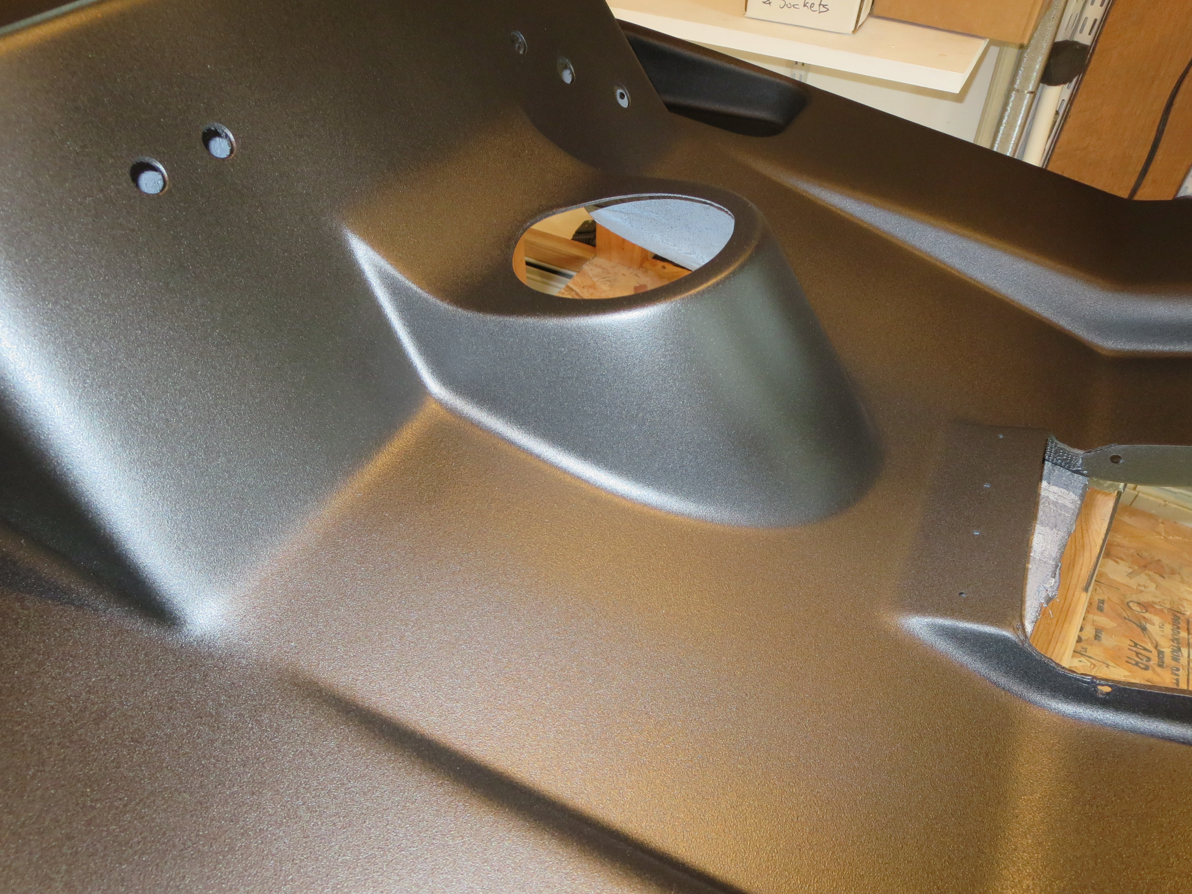 The interior of the cabin will be painted with a Rustoleum "Simply Stone" textured paint. It's kind of like spatter paint from old car trunks. The seat pan top and instrument pod will be satin black for low reflections.