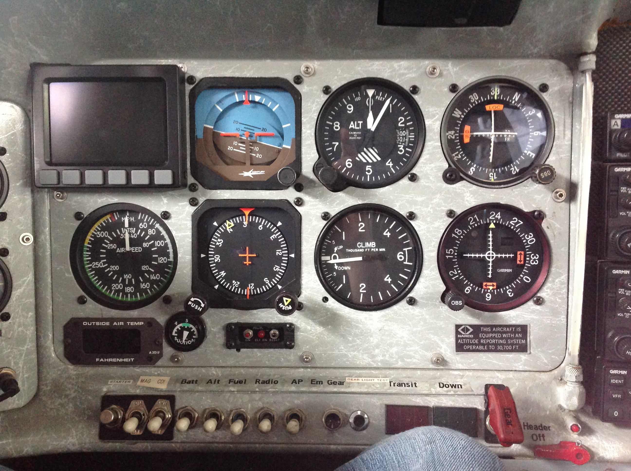There is a ton of really nice, and incredibly capable new glass out there, but it is really hard to justify a wholesale replacement, especially since I already own the D-180. The Garmin 430's work just fine and there is really no way to get lost with a pair of those in the panel. The Century Autopilot is acceptable, but requires the DG and AI gyros; both vacuum and both very heavy.